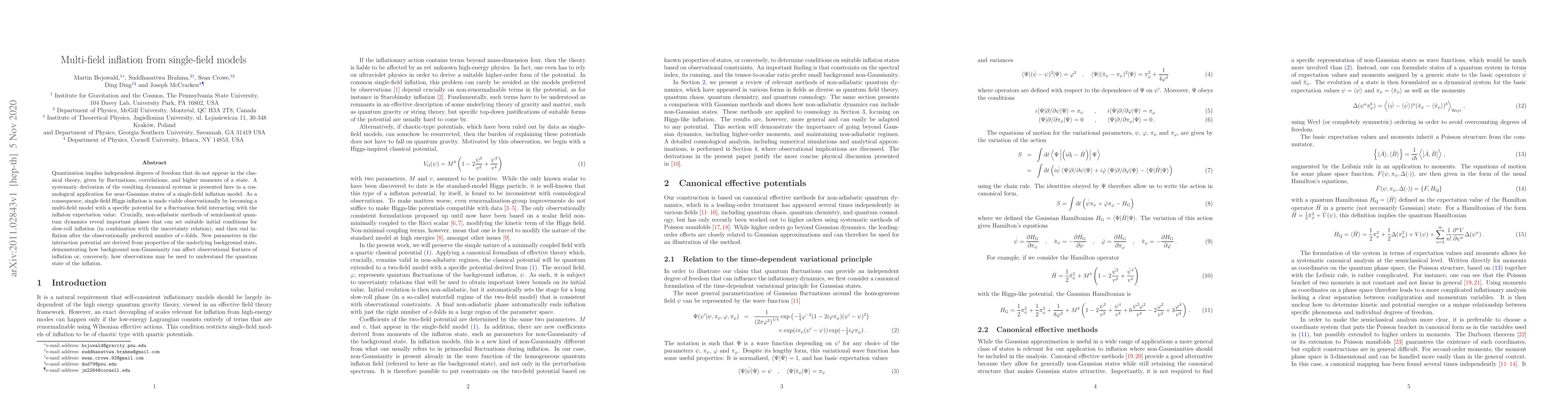 Quantization implies independent degrees of freedom that do not appear in the classical theory, given by fluctuations, correlations, and higher moments of a state. A systematic derivation of the resulting dynamical systems is presented here in a cosmological application for near-Gaussian states of a single-field inflation model. As a consequence, single-field Higgs inflation is made viable observationally by becoming a multi-field model with a specific potential for a fluctuation field interacting with the inflaton expectation value. Crucially, non-adiabatic methods of semiclassical quantum dynamics reveal important phases that can set suitable initial conditions for slow-roll inflation (in combination with the uncertainty relation), and then end inflation after the observationally preferred number of e-folds. New parameters in the interaction potential are derived from properties of the underlying background state, demonstrating how background non-Gaussianity can affect observational features of inflation or, conversely, how observations may be used to understand the quantum state of the inflaton.