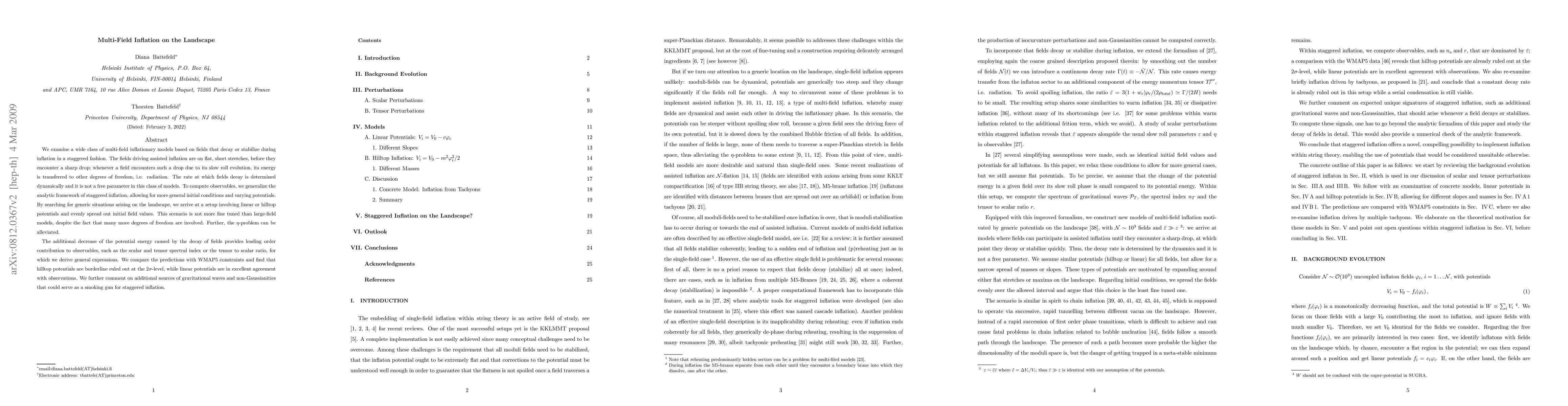 We examine a wide class of multi-field inflationary models based on fields that decay or stabilize during inflation in a staggered fashion. The fields driving assisted inflation are on flat, short stretches, before they encounter a sharp drop; whenever a field encounters such a drop due to its slow roll evolution, its energy is transferred to other degrees of freedom, i.e. radiation. The rate at which fields decay is determined dynamically and it is not a free parameter in this class of models. To compute observables, we generalize the analytic framework of staggered inflation, allowing for more general initial conditions and varying potentials. By searching for generic situations arising on the landscape, we arrive at a setup involving linear or hilltop potentials and evenly spread out initial field values. This scenario is not more fine tuned than large-field models, despite the fact that many more degrees of freedom are involved. Further, the $\eta$-problem can be alleviated. The additional decrease of the potential energy caused by the decay of fields provides leading order contribution to observables, such as the scalar and tensor spectral index or the tensor to scalar ratio, for which we derive general expressions. We compare the predictions with WMAP5 constraints and find that hilltop potentials are borderline ruled out at the $2\sigma$-level, while linear potentials are in excellent agreement with observations. We further comment on additional sources of gravitational waves and non-Gaussianities that could serve as a smoking gun for staggered inflation.