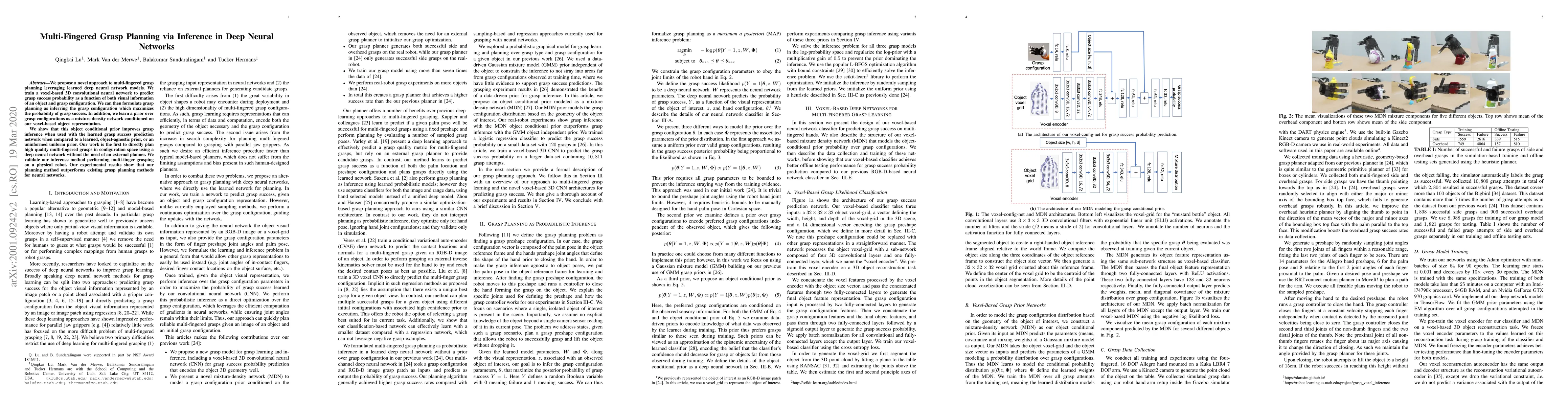 This paper introduces a deep neural network approach for multi-fingered grasp planning, using a voxel-based 3D convolutional network to predict grasp success. The method outperforms existing methods by incorporating an object-conditional prior over grasp configurations, achieving superior grasp planning directly in configuration space.