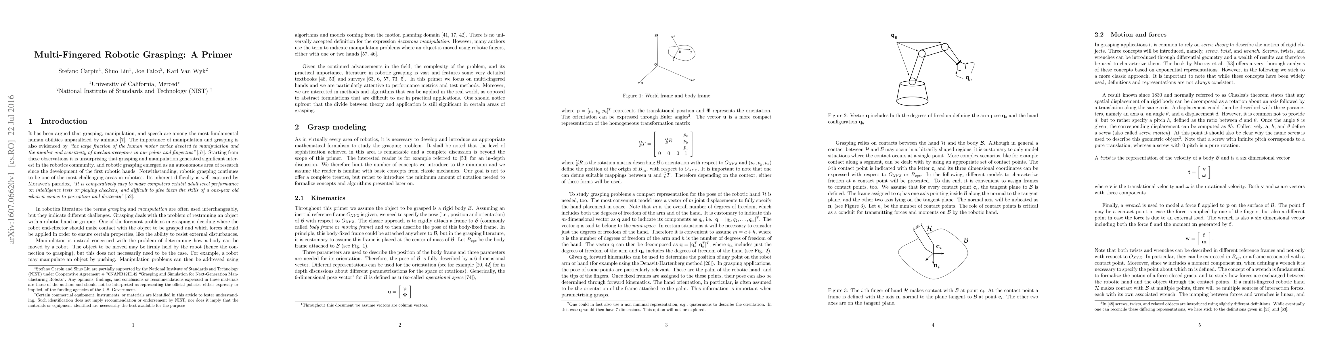 This report introduces multi-fingered robotic grasping, covering mathematical modeling, form and force closure, various grasp planning algorithms, and performance benchmarking. It aims to provide a comprehensive overview of the field.