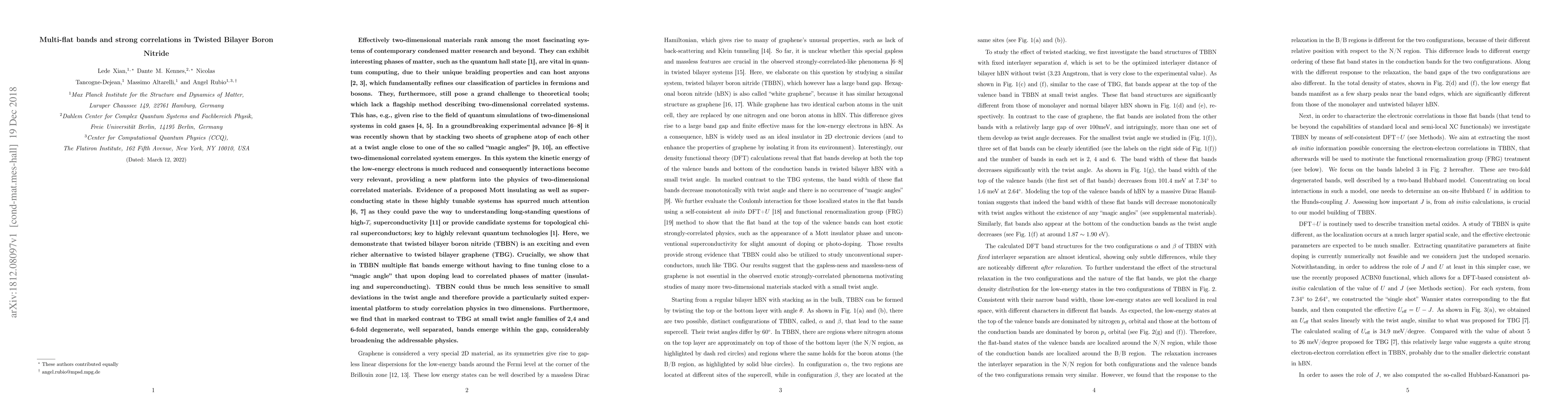 The paper presents a combined DFT+U and FRG approach to analyze the electronic structure and correlations in TBBN, revealing multiple flat bands and diverse correlated phases.