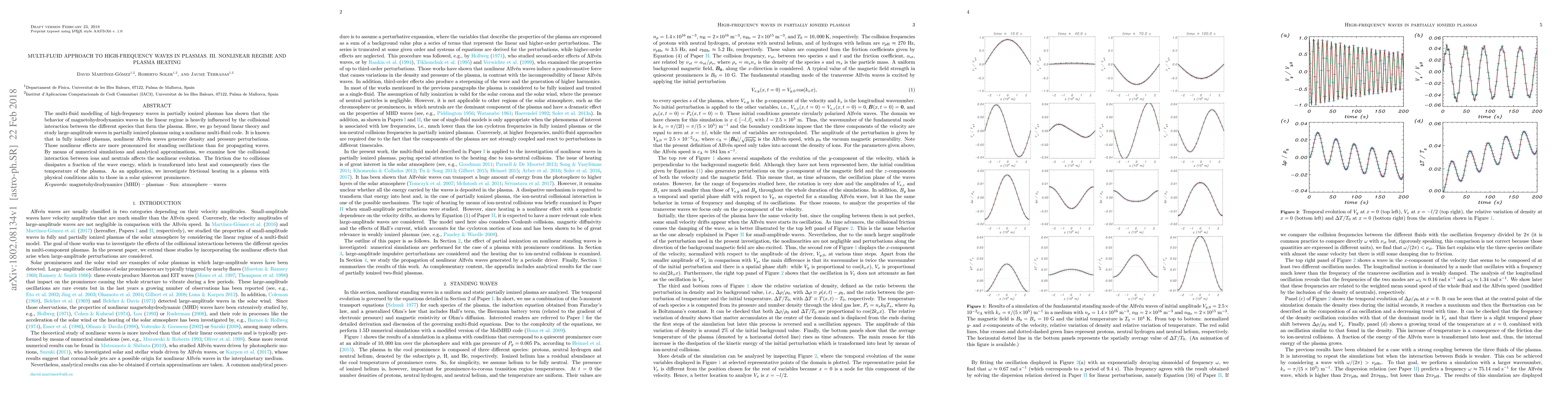 This paper employs a multi-fluid model to study nonlinear high-frequency waves in partially ionized plasmas, revealing that collisional interactions between ions and neutrals significantly impact the wave's energy dissipation and heating, with implications for understanding frictional heating in solar quiescent prominences.