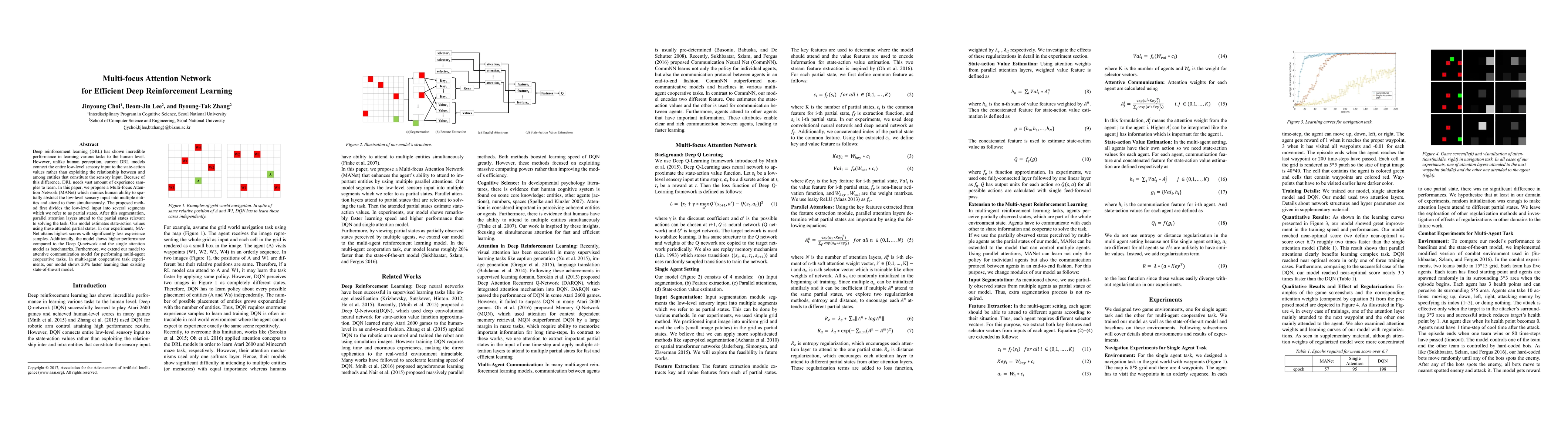 A new Deep Reinforcement Learning model, Multi-focus Attention Network (MANet), improves performance with less experience samples than existing methods, achieving 20% faster learning in multi-agent cooperative tasks.