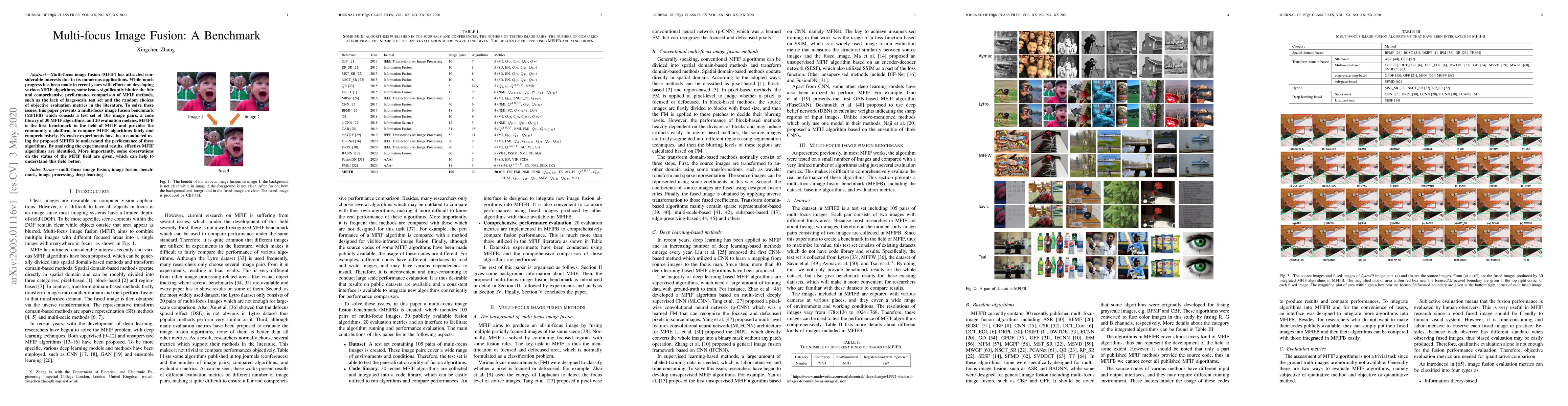 This paper introduces a multi-focus image fusion benchmark (MFIFB) that includes a test set, algorithm library, and evaluation metrics to facilitate fair comparisons of MFIF methods. The benchmark aims to address existing issues in the field and provides insights into the current state of MFIF algorithms.