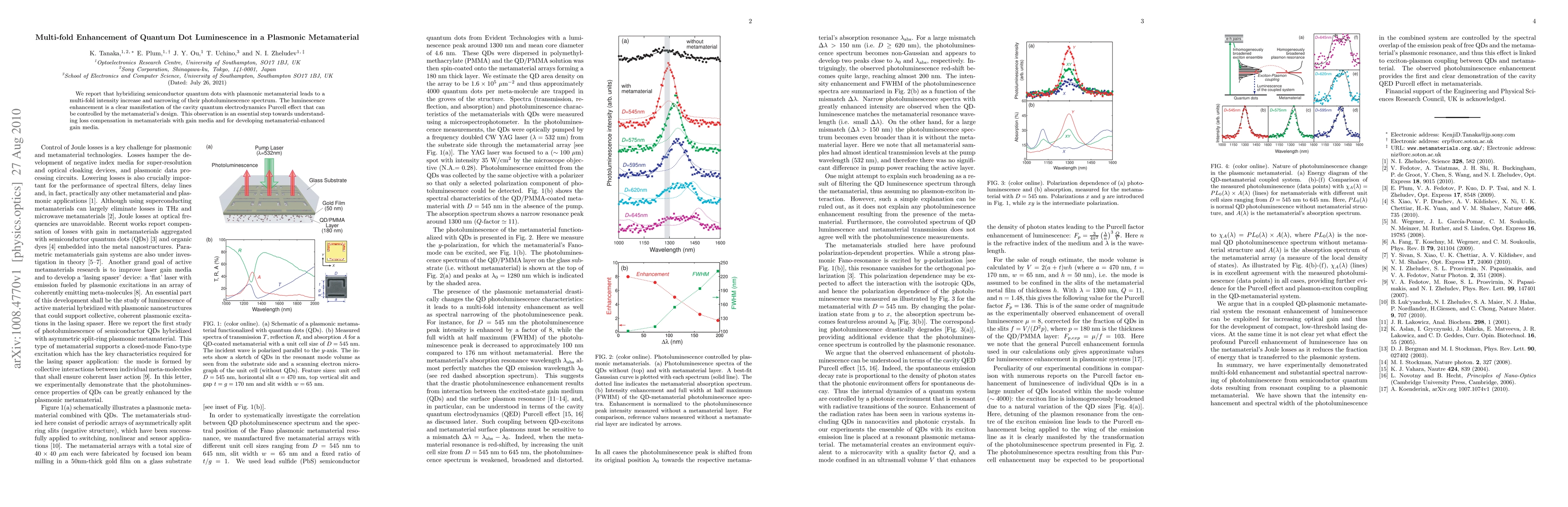 This study demonstrates significant enhancement in the luminescence intensity and narrowing of the photoluminescence spectrum of semiconductor quantum dots when hybridized with plasmonic metamaterials, revealing a controlled Purcell effect essential for future metamaterial-enhanced gain media applications.
