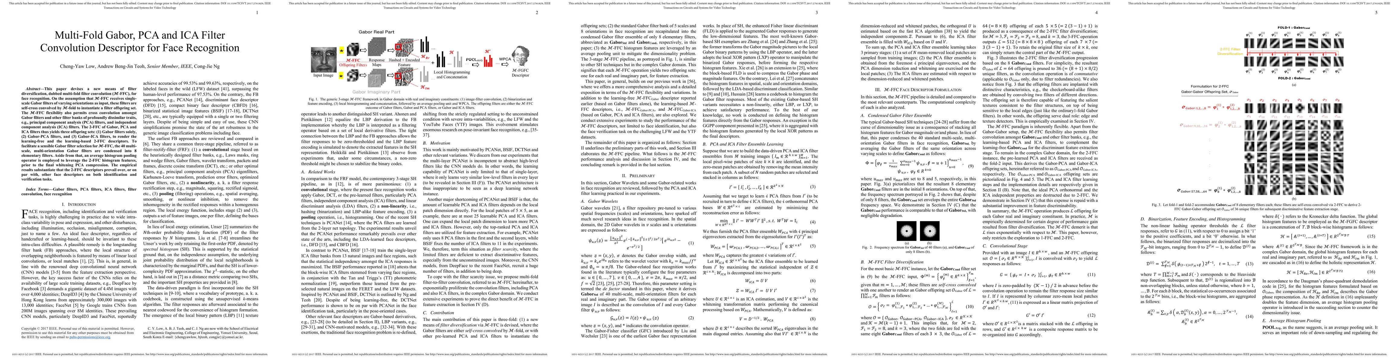 This paper introduces a multi-fold filter convolution (M-FFC) method for face recognition, which cross-convolves Gabor, PCA, and ICA filters to create diverse filter sets. The empirical results show that the proposed descriptors outperform or match other methods in identification and verification tasks.