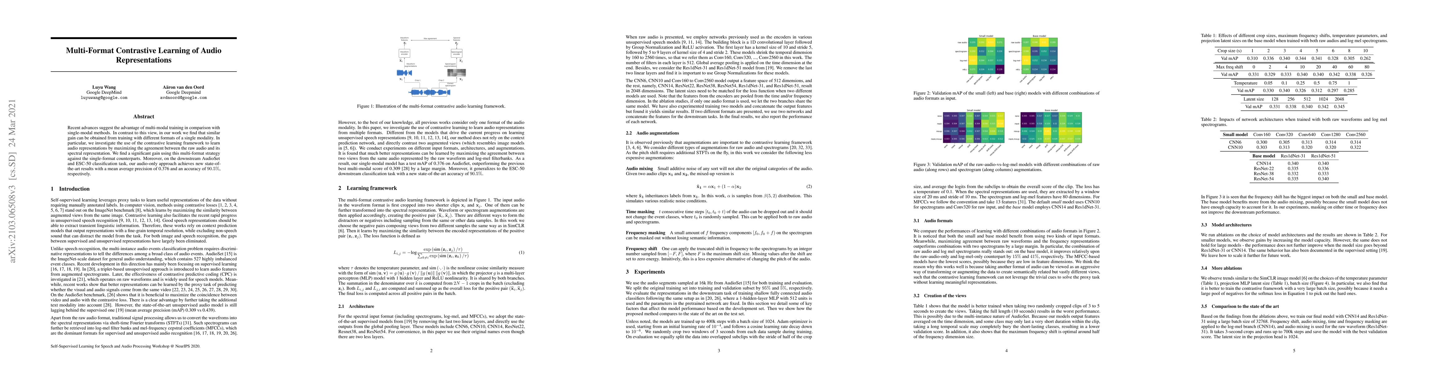 Recent advances suggest the advantage of multi-modal training in comparison with single-modal methods. In contrast to this view, in our work we find that similar gain can be obtained from training with different formats of a single modality. In particular, we investigate the use of the contrastive learning framework to learn audio representations by maximizing the agreement between the raw audio and its spectral representation. We find a significant gain using this multi-format strategy against the single-format counterparts. Moreover, on the downstream AudioSet and ESC-50 classification task, our audio-only approach achieves new state-of-the-art results with a mean average precision of 0.376 and an accuracy of 90.5%, respectively.