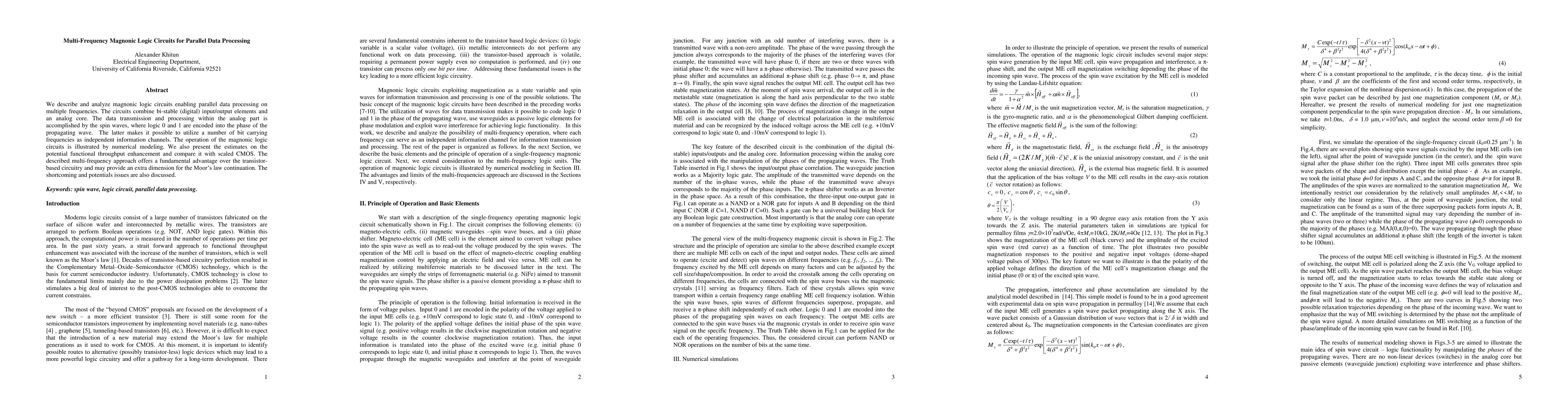 This paper proposes magnonic logic circuits using spin waves for parallel data processing across multiple frequencies, leveraging phase encoding for logic states. Numerical modeling demonstrates potential throughput enhancements over scaled CMOS, suggesting a new dimension for future computing advancements.