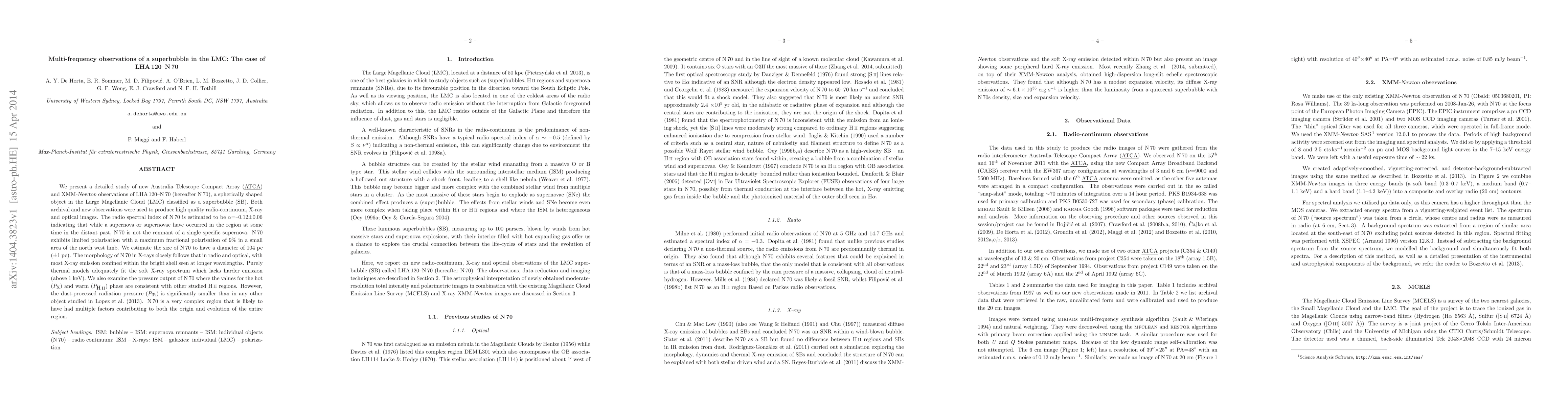 We present a detailed study of new Australia Telescope Compact Array (ATCA) and XMM-Newton observations of LHA 120-N 70 (hereafter N 70), a spherically shaped object in the Large Magellanic Cloud (LMC) classified as a superbubble (SB). Both archival and new observations were used to produce high quality radio-continuum, X-ray and optical images. The radio spectral index of N 70 is estimated to be $\alpha=-0.12\pm 0.06$ indicating that while a supernova or supernovae have occurred in the region at some time in the distant past, N70 is not the remnant of a single specific supernova. N70 exhibits limited polarisation with a maximum fractional polarisation of 9% in a small area of the north west limb. We estimate the size of N 70 to have a diameter of 104 pc ($\pm 1$ pc). The morphology of N 70 in X-rays closely follows that in radio and optical, with most X-ray emission confined within the bright shell seen at longer wavelengths. Purely thermal models adequately fit the soft X-ray spectrum which lacks harder emission (above 1 keV). We also examine the pressure output of N 70 where the values for the hot (PX) and warm (PHii) phase are consistent with other studied Hii regions. However, the dust-processed radiation pressure (PIR) is significantly smaller than in any other object studied in Lopez et al. (2013). N70 is a very complex region that is likely to have had multiple factors contributing to both the origin and evolution of the entire region.
