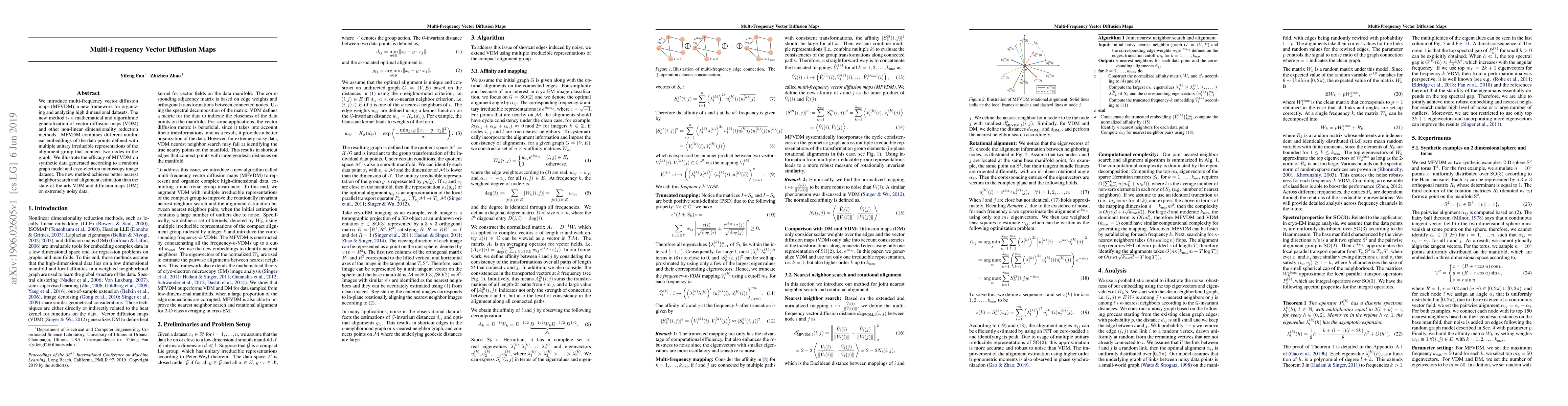 Multi-Frequency Vector Diffusion Maps (MFVDM) is a novel framework for high-dimensional dataset analysis, extending vector diffusion maps with multiple unitary representations for improved dimensionality reduction. The method outperforms existing techniques like VDM and DM in noisy data scenarios, as demonstrated on synthetic and cryo-electron microscopy datasets.
