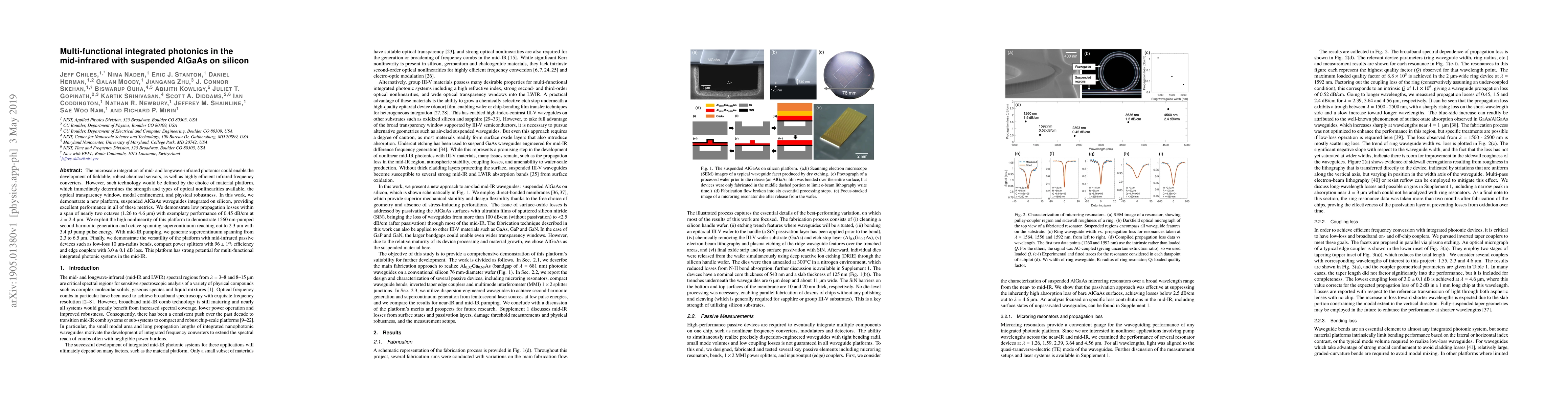 This research introduces suspended AlGaAs waveguides on silicon as a new platform for multi-functional integrated mid-infrared photonics, demonstrating low propagation losses and high nonlinearity for efficient second-harmonic generation and supercontinuum generation across a wide spectral range. The platform shows potential for robust, versatile mid-IR chemical sensors and frequency converters.