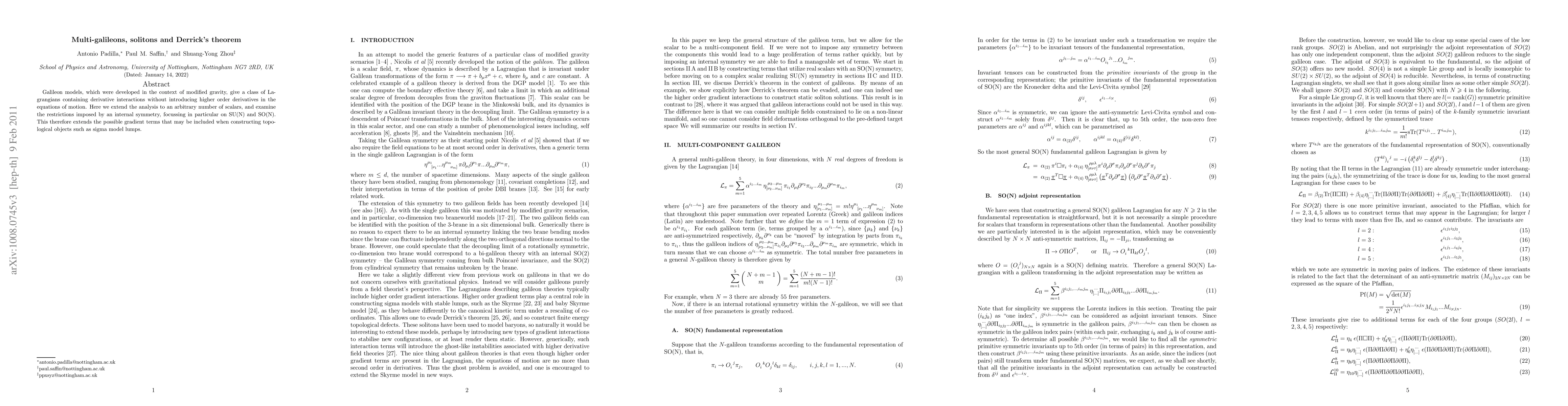The field theory Galilean symmetry, which was introduced in the context of modified gravity, gives a neat way to construct Lorentz-covariant theories of a scalar field, such that the equations of motion contain at most second-order derivatives. Here we extend the analysis to an arbitrary number of scalars, and examine the restrictions imposed by an internal symmetry, focussing in particular on SU(N) and SO(N). This therefore extends the possible gradient terms that may be used to stabilise topological objects such as sigma model lumps.