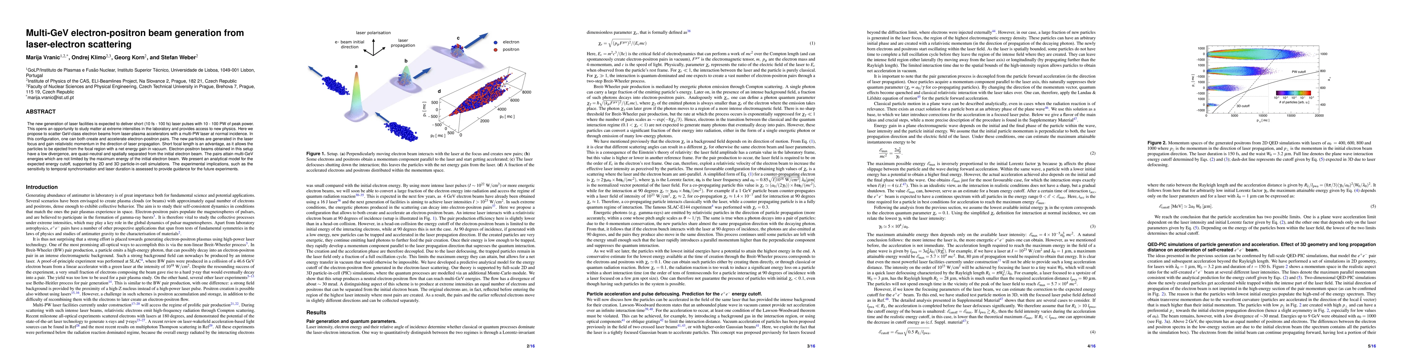This research proposes a method to generate multi-GeV electron-positron beams by scattering GeV-class electrons from laser-plasma accelerators with high-power femtosecond laser pulses, resulting in low divergence and quasi-neutral particle pairs. Analytical models and simulations predict the energy cutoff and highlight experimental factors for future implementation.