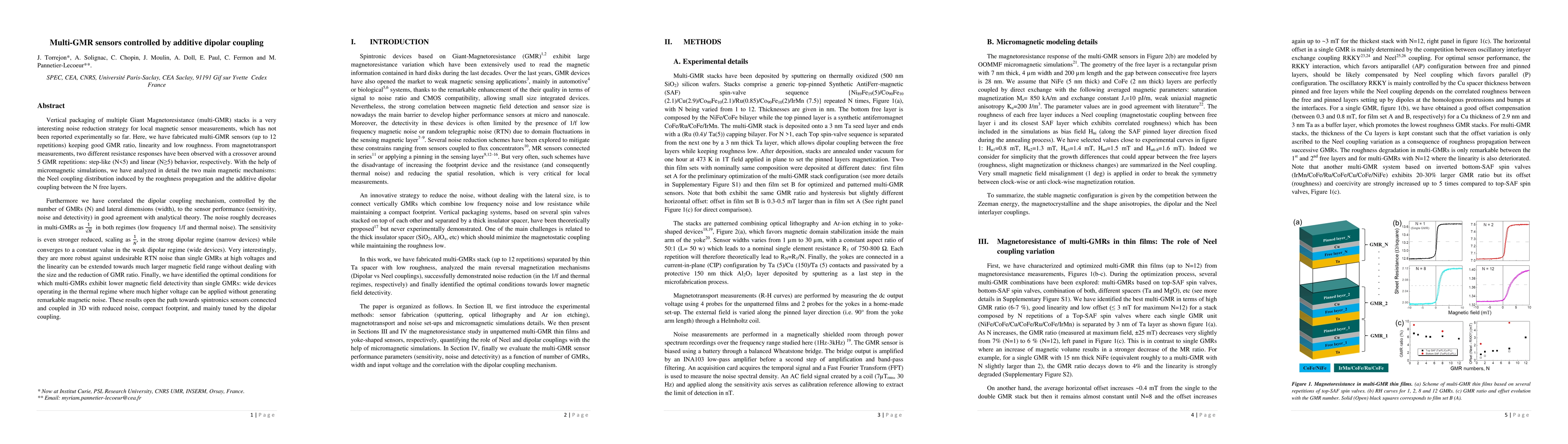 This paper investigates the noise reduction and performance enhancement of multi-GMR sensors through vertical stacking and additive dipolar coupling. The study finds that the noise reduction scales as 1/\sqrt{N}, with sensitivity scaling as 1/N, and demonstrates improved robustness against RTN noise and extended linearity in larger magnetic fields.