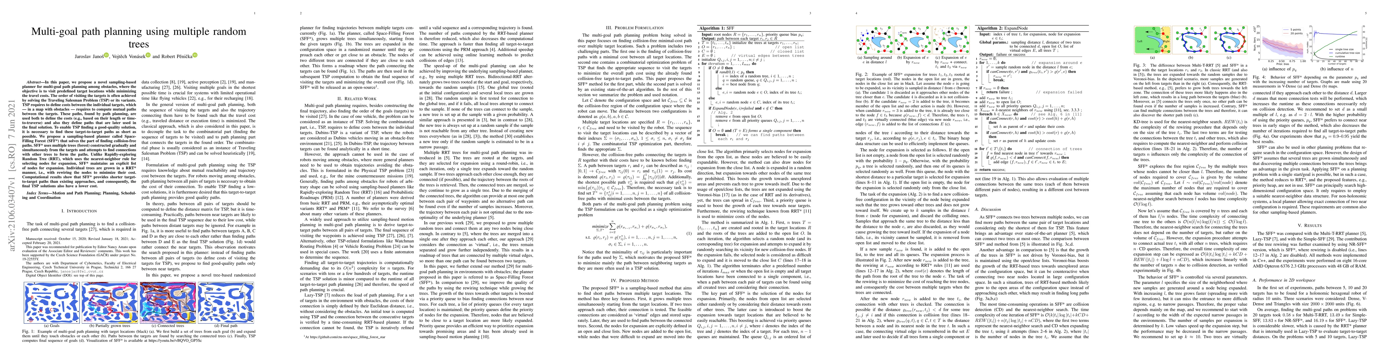 In this paper, we propose a novel sampling-based planner for multi-goal path planning among obstacles, where the objective is to visit predefined target locations while minimizing the travel costs. The order of visiting the targets is often achieved by solving the Traveling Salesman Problem (TSP) or its variants. TSP requires to define costs between the individual targets, which - in a map with obstacles - requires to compute mutual paths between the targets. These paths, found by path planning, are used both to define the costs (e.g., based on their length or time-to-traverse) and also they define paths that are later used in the final solution. To enable TSP finding a good-quality solution, it is necessary to find these target-to-target paths as short as possible. We propose a sampling-based planner called Space-Filling Forest (SFF*) that solves the part of finding collision-free paths. SFF* uses multiple trees (forest) constructed gradually and simultaneously from the targets and attempts to find connections with other trees to form the paths. Unlike Rapidly-exploring Random Tree (RRT), which uses the nearest-neighbor rule for selecting nodes for expansion, SFF* maintains an explicit list of nodes for expansion. Individual trees are grown in a RRT* manner, i.e., with rewiring the nodes to minimize their cost. Computational results show that SFF* provides shorter target-to-target paths than existing approaches, and consequently, the final TSP solutions also have a lower cost.