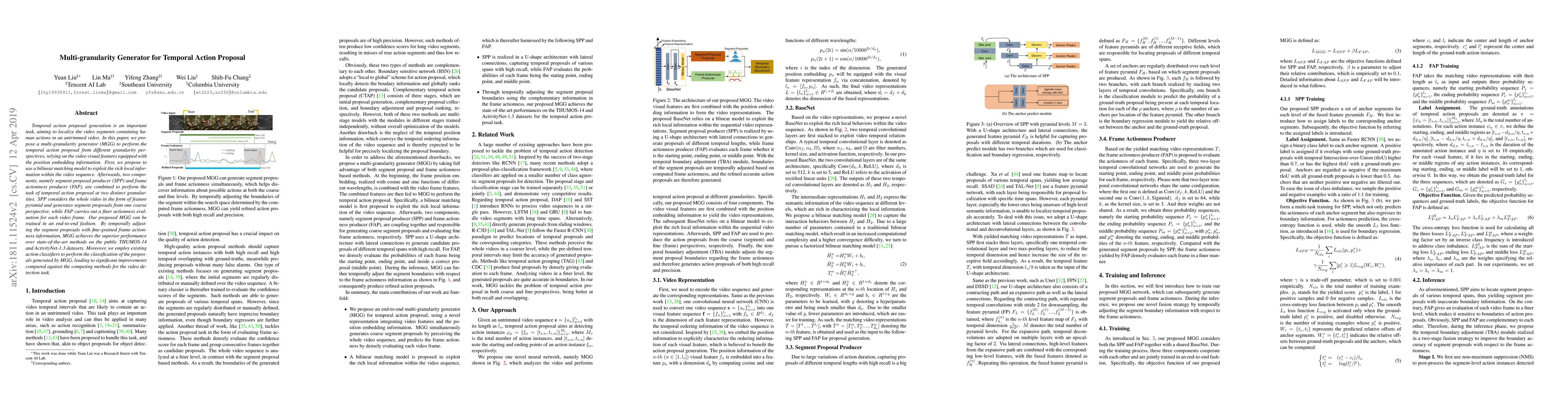This paper introduces a multi-granularity generator (MGG) for temporal action proposal generation in untrimmed videos, combining segment proposal producer (SPP) and frame actionness producer (FAP) for coarse and fine-grained action localization. The MGG achieves superior performance on THUMOS-14 and ActivityNet-1.3 datasets and significantly improves video detection task results when used with action classifiers.