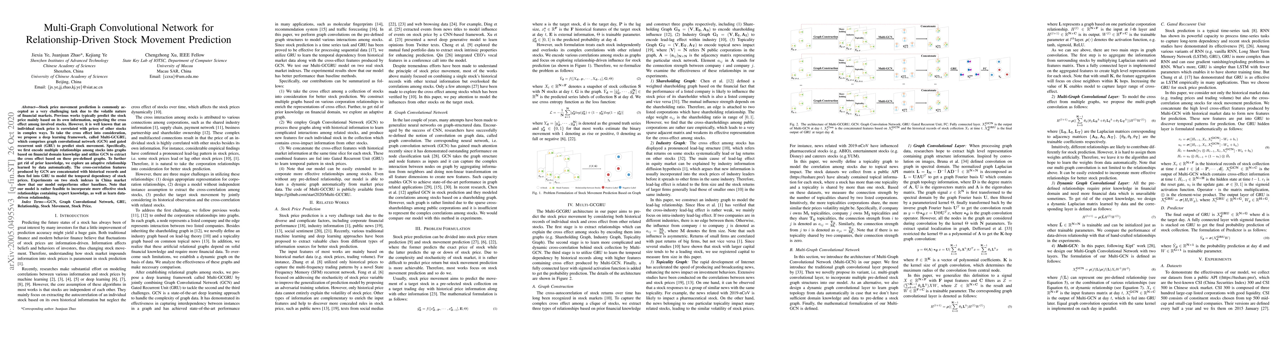 This paper proposes Multi-GCGRU, a deep learning framework combining graph convolutional networks (GCN) and gated recurrent units (GRU) to predict stock movements by considering cross-effects among stocks. The model outperforms baselines in predicting stock indexes in China by leveraging both predefined and adaptively learned relationships among stocks.