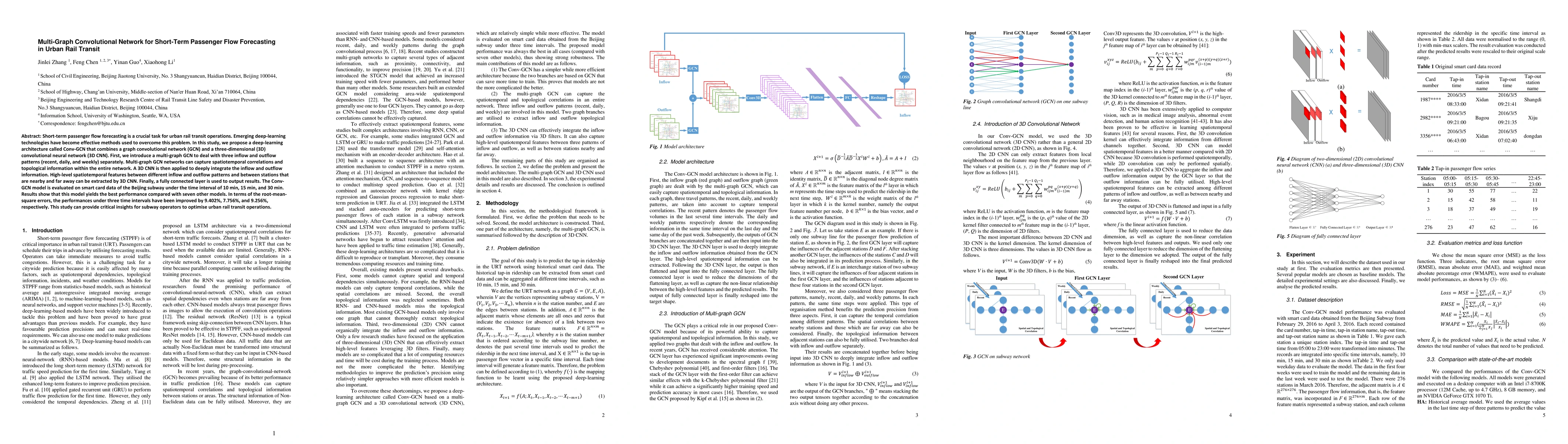 This paper proposes a Conv-GCN model combining graph convolutional networks and 3D CNNs for short-term passenger flow forecasting in urban rail transit, achieving superior performance over seven other models by improving RMSE by 9.402%, 7.756%, and 9.256% under different time intervals. The model captures spatiotemporal correlations and topological information to optimize urban rail operations.