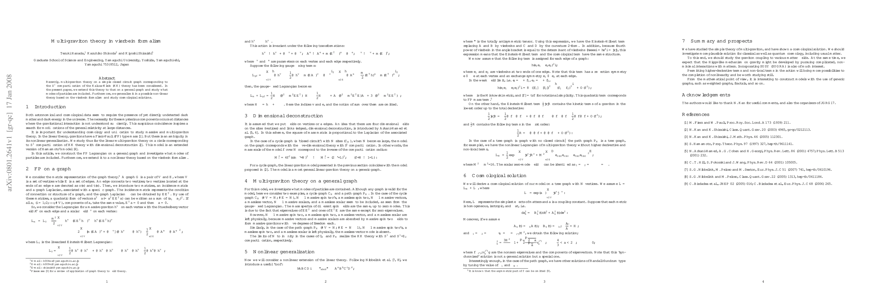 This paper extends multi-graviton theory from a simple closed circuit to general graphs, exploring included particle modes. It further develops a non-linear theory using the vierbein formalism and investigates its cosmological solutions.