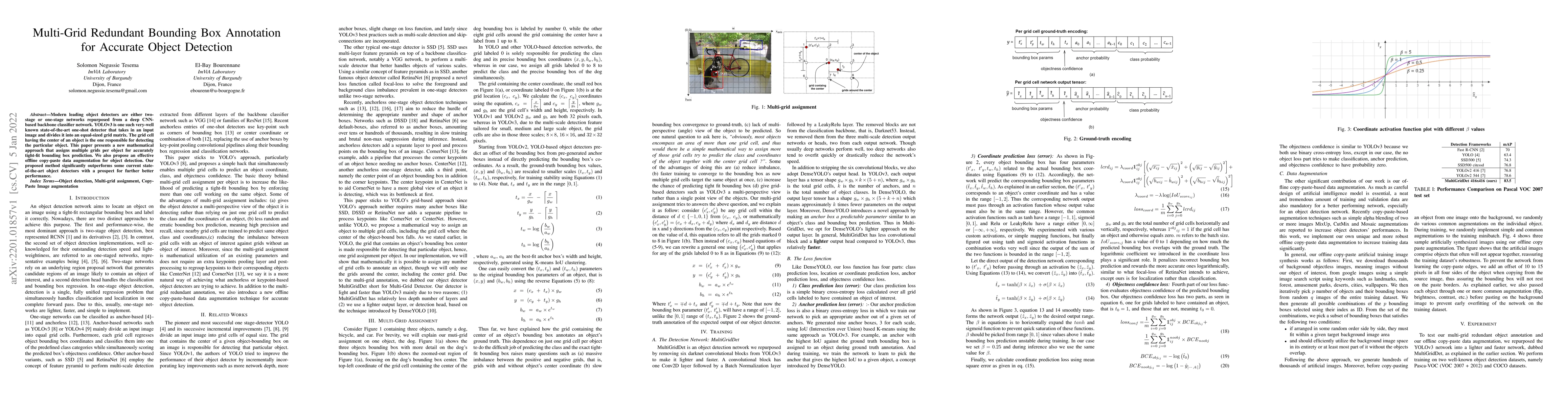 This paper introduces a novel multi-grid redundant bounding box annotation method to enhance object detection accuracy, assigning multiple grids per object for tighter bounding box predictions. It also proposes an offline copy-paste data augmentation technique, achieving superior performance compared to existing state-of-the-art detectors.