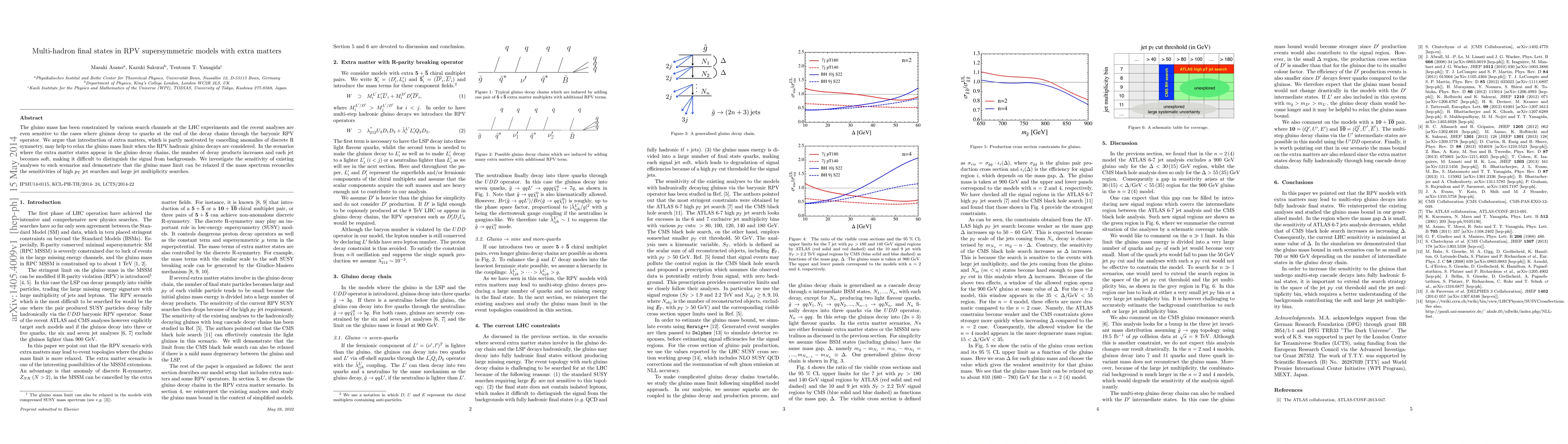 Existing analyses at the LHC may struggle to distinguish gluino decay signals due to increased jet multiplicity, allowing for a more relaxed gluino mass limit when extra matters are introduced into the model.