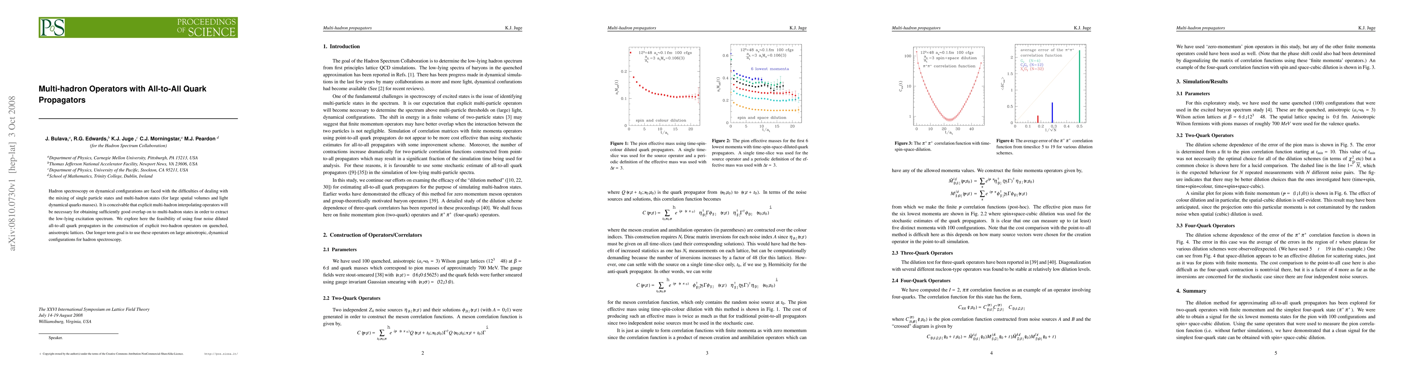 Hadron spectroscopy on dynamical configurations are faced with the difficulties of dealing with the mixing of single particle states and multi-hadron states (for large spatial volumes and light dynamical quarks masses). It is conceivable that explicit multi-hadron interpolating operators will be necessary for obtaining sufficiently good overlap onto multi-hadron states in order to extract the low-lying excitation spectrum. We explore here the feasibility of using four noise diluted all-to-all quark propagators in the construction of explicit two-hadron operators on quenched, anisotropic lattices. Our longer term goal is to use these operators on large anisotropic, dynamical configurations for hadron spectroscopy.