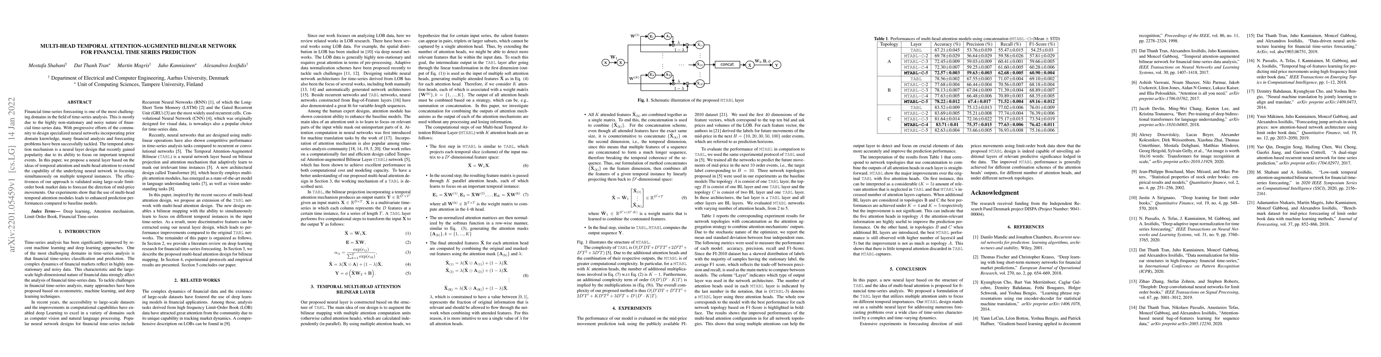 This paper proposes a multi-head temporal attention-augmented bilinear network for financial time-series prediction, leveraging temporal attention to focus on significant temporal events. Experiments on limit-order book market data demonstrate improved forecasting accuracy over baseline models.