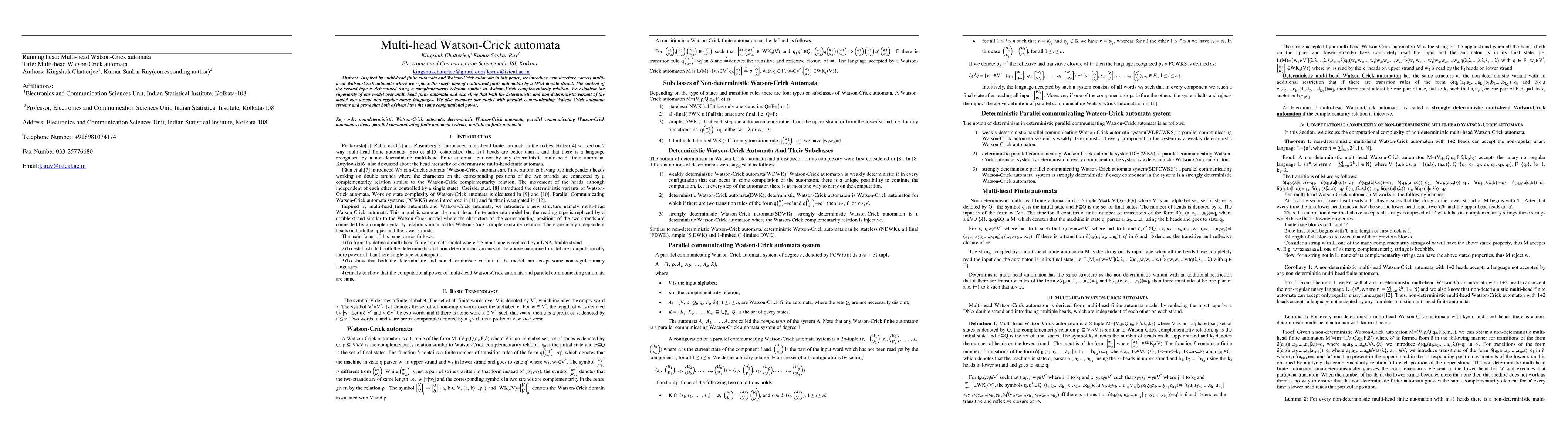 This paper introduces multi-head Watson-Crick automata, replacing the tape of multi-head finite automata with a DNA double strand using Watson-Crick complementarity. It demonstrates the model's ability to accept non-regular unary languages and shows equivalence in computational power with parallel communicating Watson-Crick automata systems.