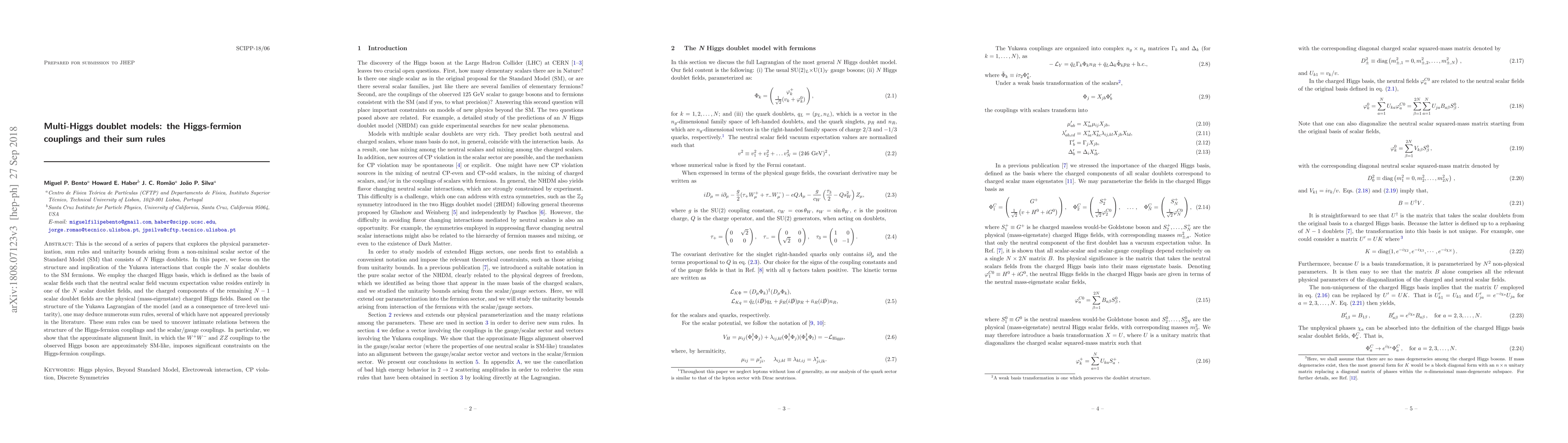 The paper introduces a physical parameterization, sum rules, and unitarity bounds for a non-minimal scalar sector with N Higgs doublets, focusing on the Yukawa interactions and deriving novel sum rules from the Yukawa Lagrangian.