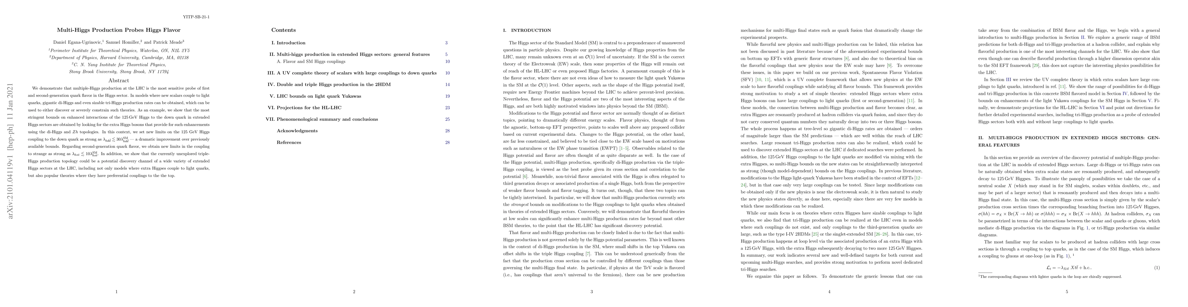 We demonstrate that multiple-Higgs production at the LHC is the most sensitive probe of first and second-generation quark flavor in the Higgs sector. In models where new scalars couple to light quarks, gigantic di-Higgs and even sizable tri-Higgs production rates can be obtained, which can be used to either discover or severely constrain such theories. As an example, we show that the most stringent bounds on enhanced interactions of the $125\,\textrm{GeV}$ Higgs to the down quark in extended Higgs sectors are obtained by looking for the extra Higgs bosons that provide for such enhancements using the di-Higgs and $Zh$ topologies. In this context, we set new limits on the 125 GeV Higgs coupling to the down quark as strong as $\lambda_{hd\bar{d}} \lesssim 30 \lambda_{hd\bar{d}}^{\textrm{SM}}$ -- a dramatic improvement over previously available bounds. Regarding second-generation quark flavor, we obtain new limits in the coupling to strange as strong as $\lambda_{hs\bar{s}} \lesssim 10 \lambda_{hs\bar{s}}^{\textrm{SM}}$. In addition, we show that the currently unexplored triple-Higgs production topology could be a potential discovery channel of a wide variety of extended Higgs sectors at the LHC, including not only models where extra Higgses couple to light quarks, but also popular theories where they have preferential couplings to the the top.