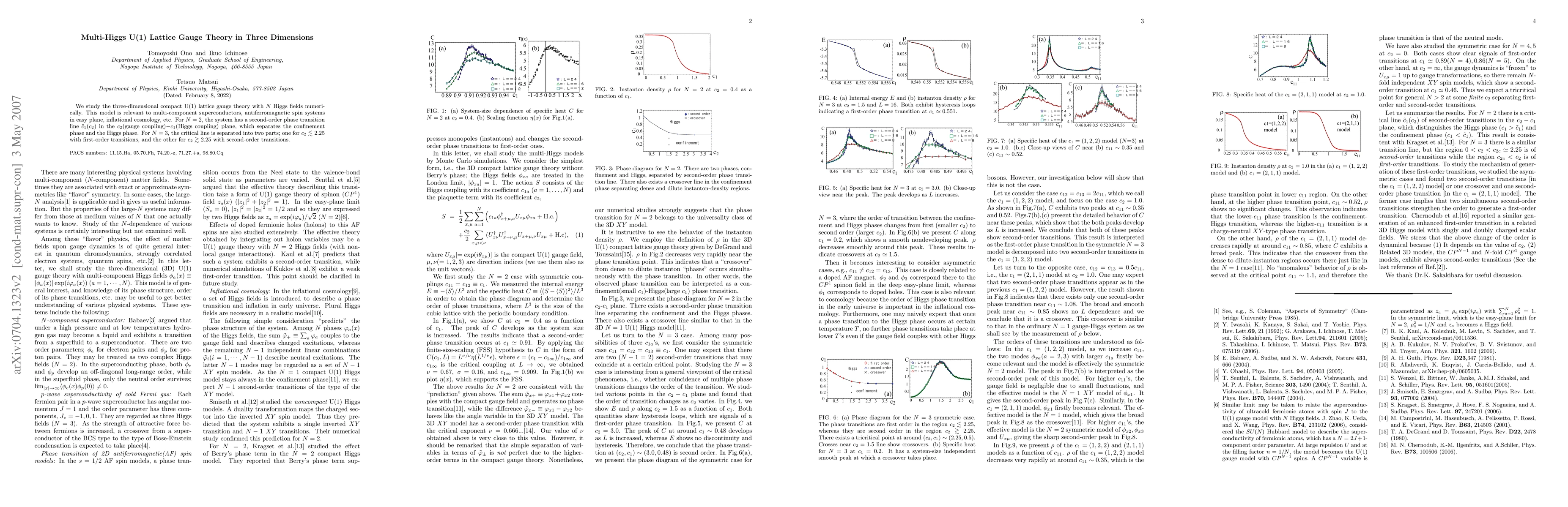 This paper numerically investigates a three-dimensional compact U(1) lattice gauge theory with multiple Higgs fields, relevant to various physical phenomena. It finds a second-order phase transition for N=2, while for N=3, the critical line splits into regions with first-order and second-order transitions.