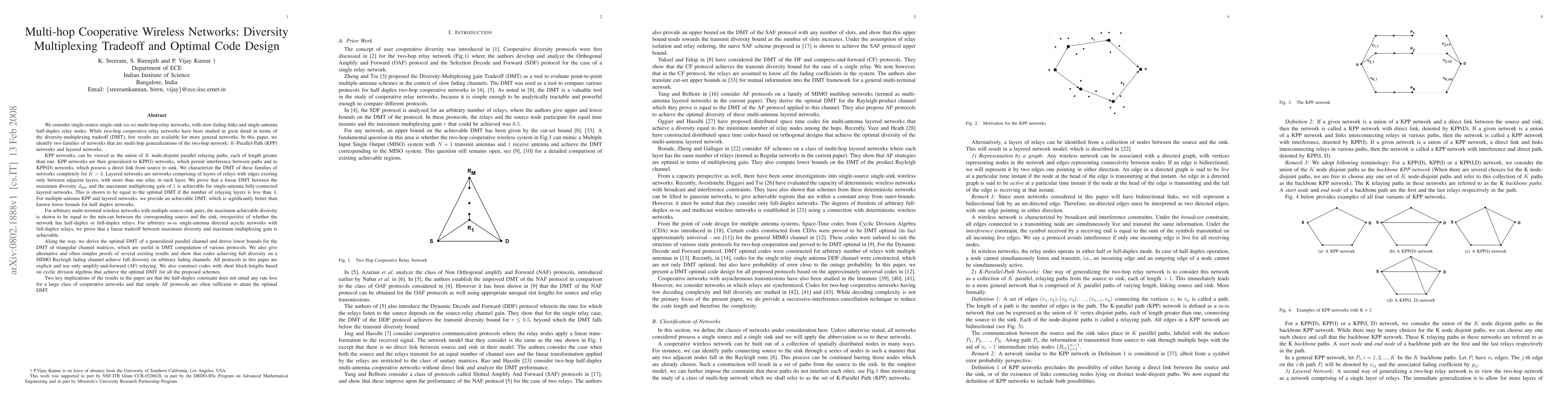 This paper investigates multi-hop cooperative wireless networks, focusing on the diversity-multiplexing tradeoff (DMT) for K-Parallel-Path and layered networks. It demonstrates that simple amplify-and-forward protocols achieve optimal DMT for these networks, showing no rate loss under half-duplex constraints.