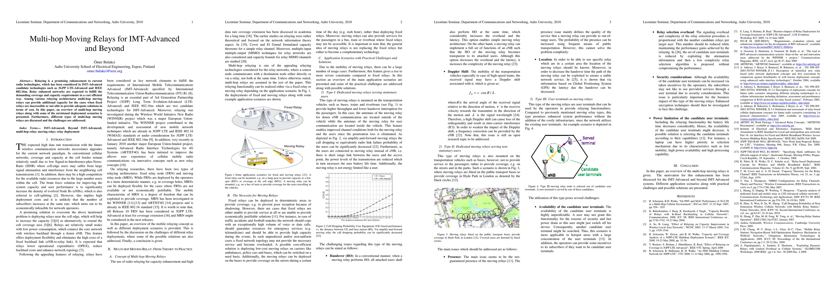 This paper provides an overview of multi-hop moving relays as a cost-effective enhancement to IMT-Advanced and future radio technologies, discussing various deployment scenarios and challenges associated with their implementation.