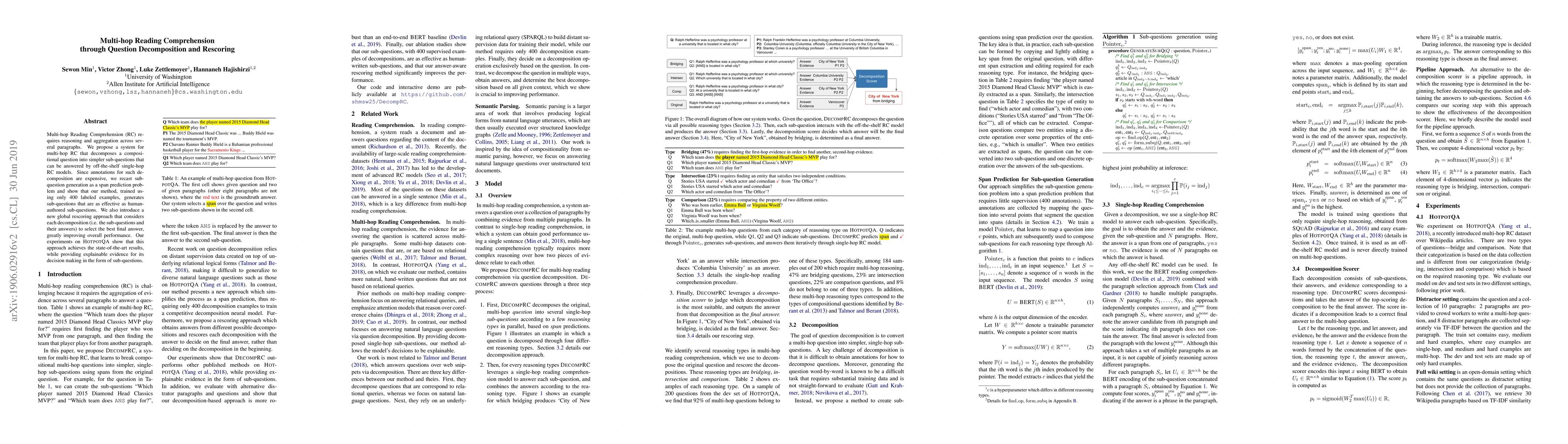 Researchers propose a system to answer multi-hop reading comprehension questions by breaking them down into simpler sub-questions and using off-the-shelf models, achieving state-of-the-art results with minimal training data.