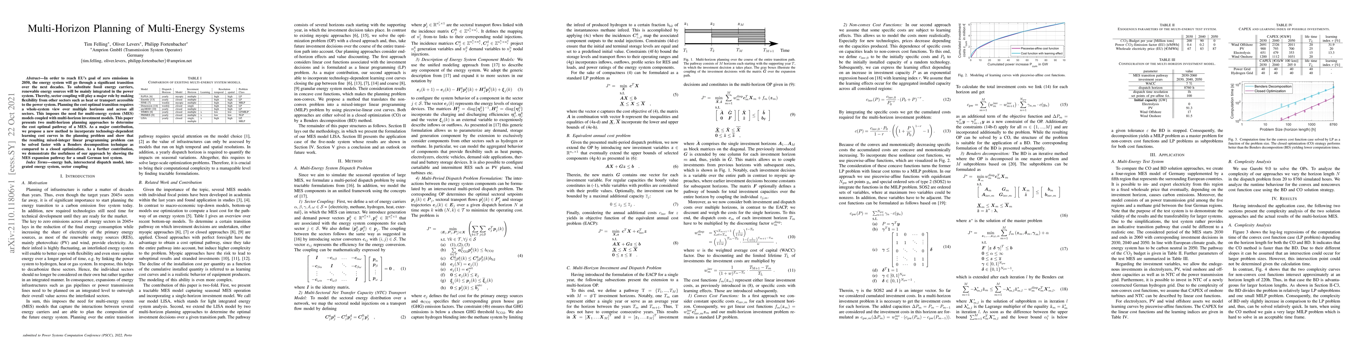 This paper proposes two multi-horizon planning approaches for cost-optimal transition in multi-energy systems (MES) to achieve EU's zero emissions goal by 2050. It introduces a new method incorporating technology-dependent learning curves and demonstrates faster solution via Benders decomposition.