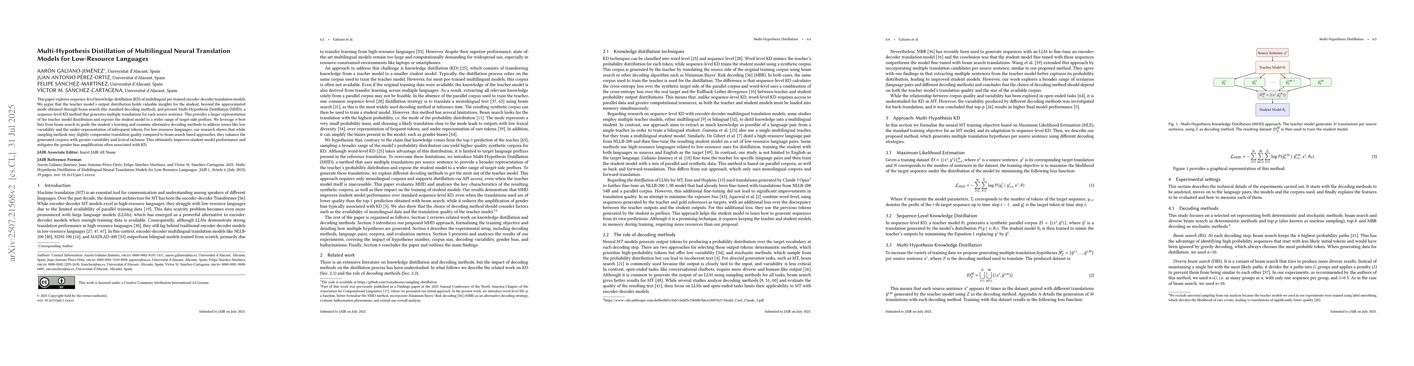 This research is significant as it addresses the challenge of low-resource language translation by developing MHD, which enhances student model performance with smaller corpora and reduces gender bias and hallucinations. The findings contribute to the development of more efficient and fair machine translation systems, particularly for under-resourced languages.