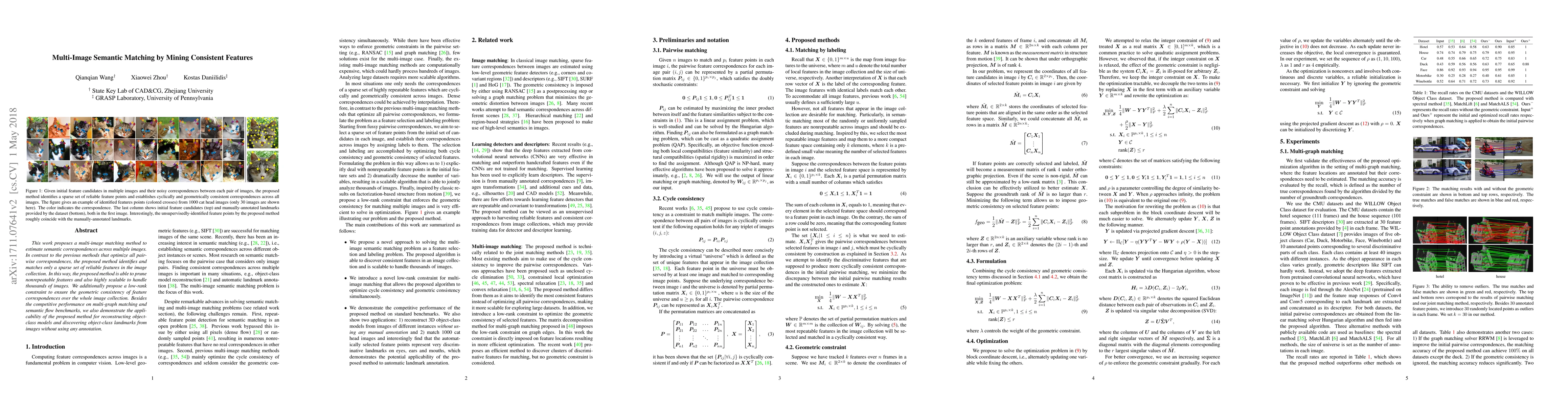 This paper introduces a scalable multi-image matching method that identifies and matches sparse, reliable features to estimate semantic correspondences, employing a low-rank constraint for geometric consistency and demonstrating applications in model reconstruction and landmark discovery.