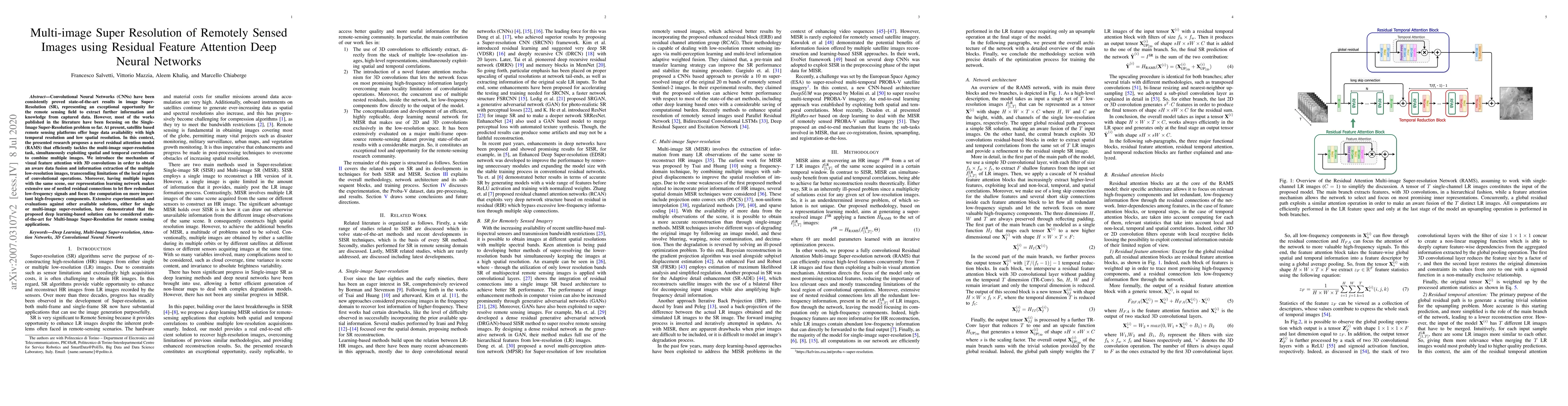 This paper proposes a novel residual attention model (RAMS) for multi-image super-resolution in remote sensing, leveraging 3D convolutions and visual feature attention to enhance data fusion and information extraction. The model uses nested residual connections to focus on high-frequency components, achieving state-of-the-art results in multi-image super-resolution for remote sensing applications.