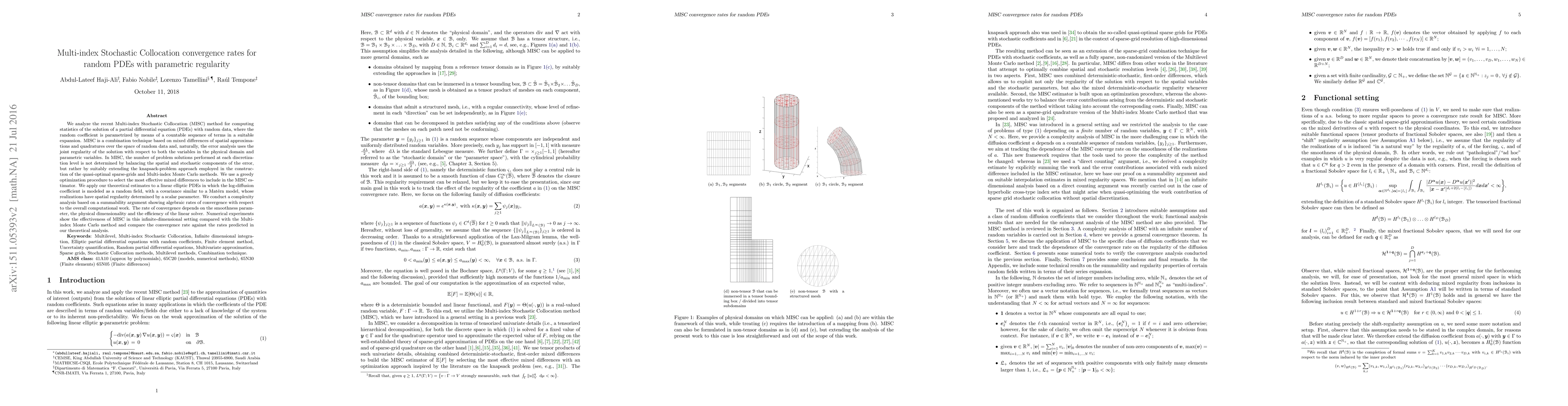 A new method called Multi-index Stochastic Collocation (MISC) improves convergence rates for solving partial differential equations with random data, offering a more efficient solution than previous methods.