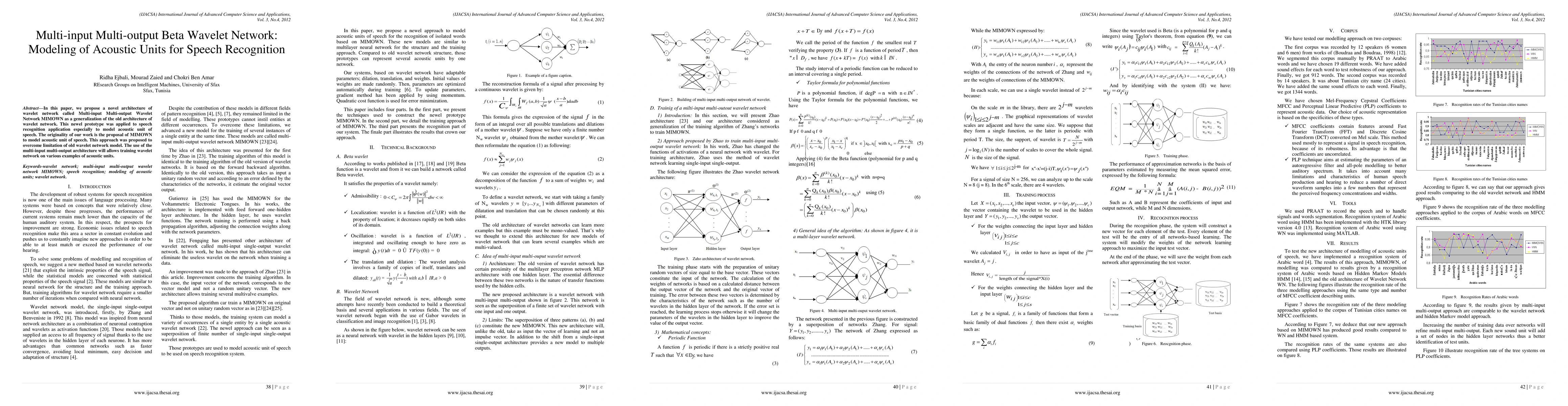 This paper introduces a novel Multi-input Multi-output Beta Wavelet Network (MIMOWN) architecture to model acoustic units for speech recognition, aiming to overcome limitations of traditional wavelet networks. The new approach enables training on diverse acoustic unit examples.