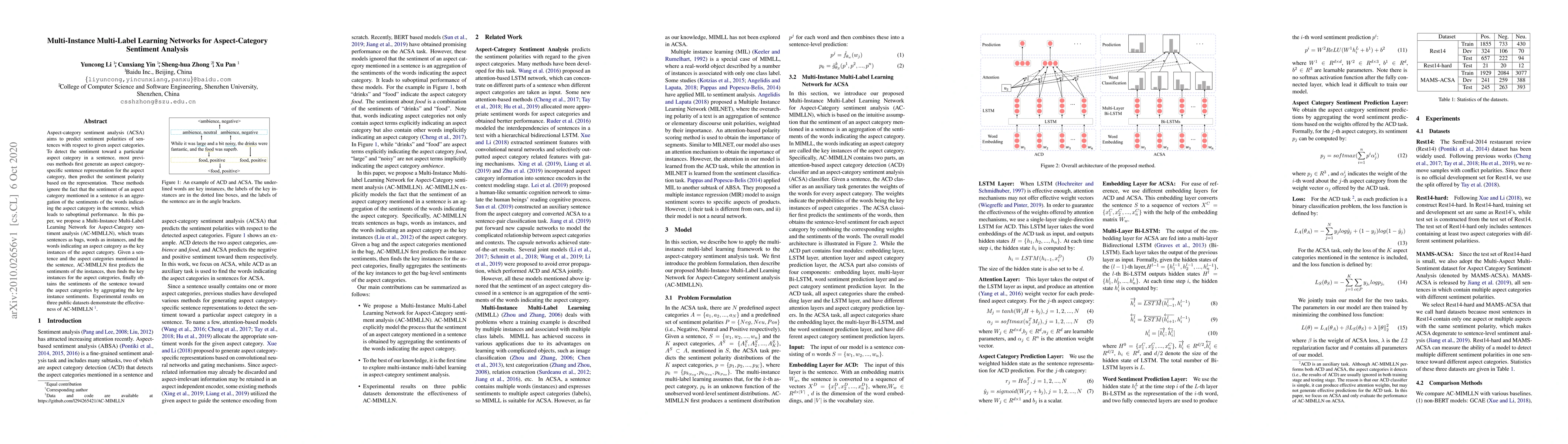 This paper proposes AC-MIMLLN, a Multi-Instance Multi-Label Learning Network for aspect-category sentiment analysis, addressing the limitation of previous methods by aggregating word sentiments to predict aspect-category sentiments. Experimental results show improved performance on three public datasets.