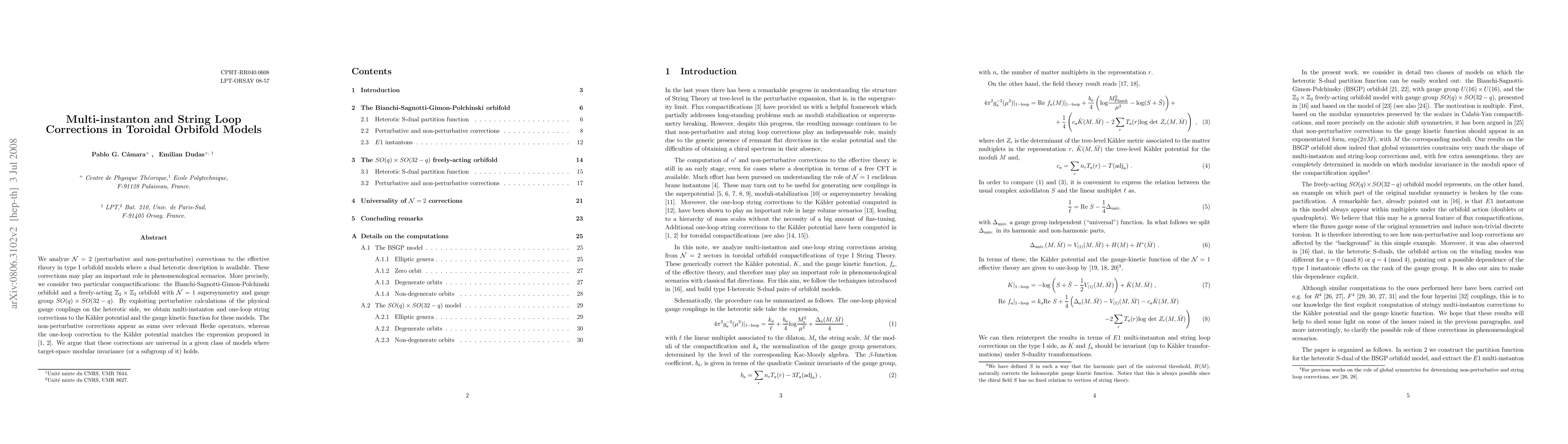 We analyze N=2 (perturbative and non-perturbative) corrections to the effective theory in type I orbifold models where a dual heterotic description is available. These corrections may play an important role in phenomenological scenarios. More precisely, we consider two particular compactifications: the Bianchi-Sagnotti-Gimon-Polchinski orbifold and a freely-acting Z_2 x Z_2 orbifold with N=1 supersymmetry and gauge group SO(q) x SO(32-q). By exploiting perturbative calculations of the physical gauge couplings on the heterotic side, we obtain multi-instanton and one-loop string corrections to the K\"ahler potential and the gauge kinetic function for these models. The non-perturbative corrections appear as sums over relevant Hecke operators, whereas the one-loop correction to the K\"ahler potential matches the expression proposed in [1,2]. We argue that these corrections are universal in a given class of models where target-space modular invariance (or a subgroup of it) holds.