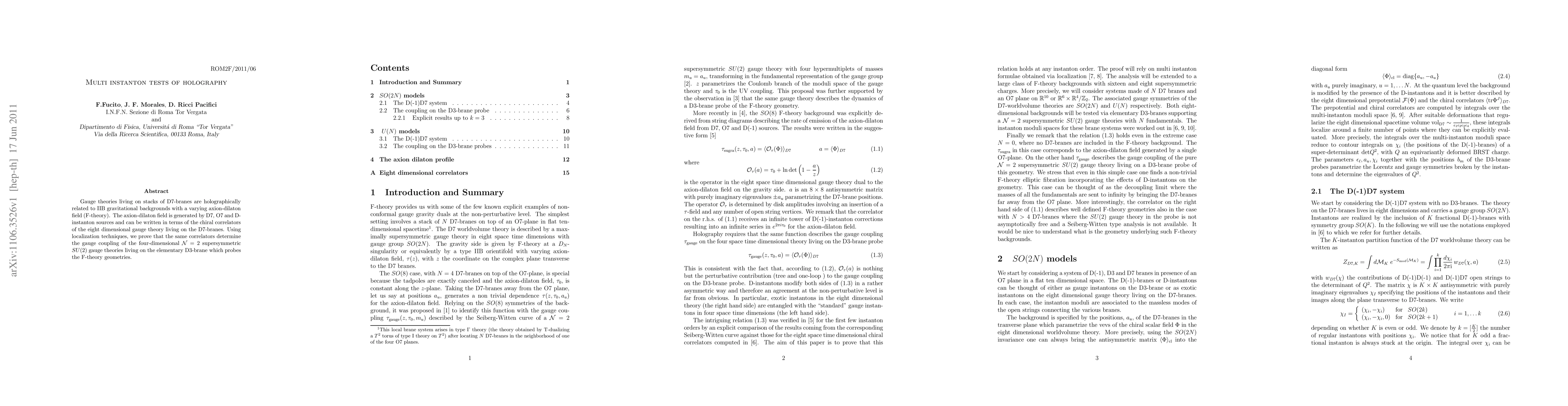 Gauge theories living on stacks of D7-branes are holographically related to IIB gravitational backgrounds with a varying axion-dilaton field (F-theory). The axion-dilaton field is generated by D7, O7 and D-instanton sources and can be written in terms of the chiral correlators of the eight dimensional gauge theory living on the D7-branes. Using localization techniques, we prove that the same correlators determine the gauge coupling of the four-dimensional N=2 supersymmetric SU(2) gauge theories living on the elementary D3-brane which probes the F-theory geometries.