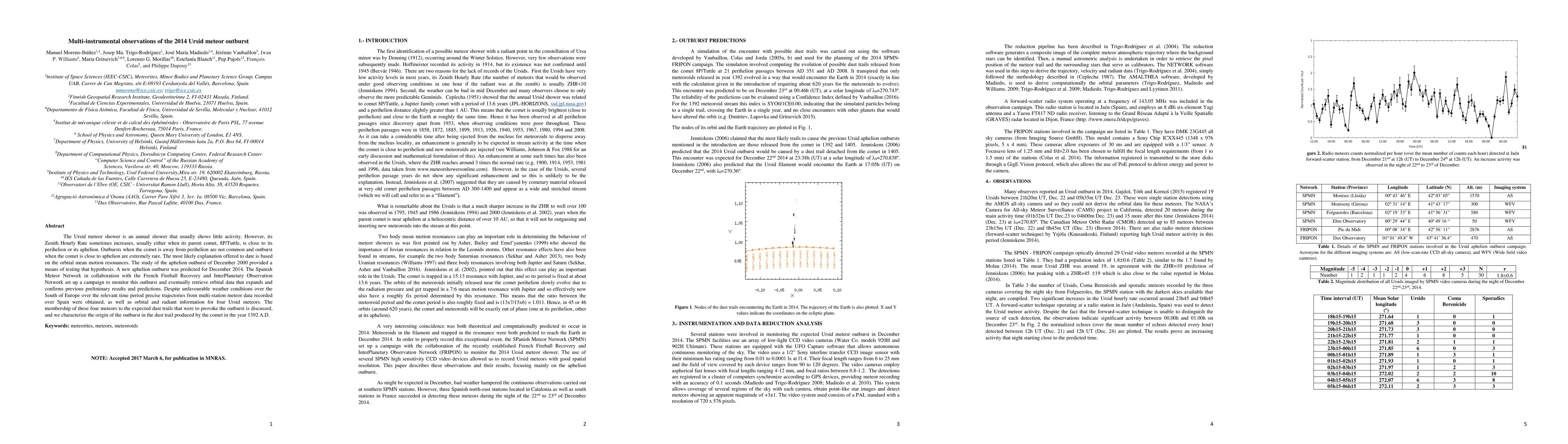 This study details multi-instrumental observations of the rare 2014 Ursid meteor outburst, confirming the hypothesis of orbital mean motion resonances. Despite adverse weather, precise meteor trajectories were obtained, revealing the origin of the outburst in the dust trail from the comet's 1392 A.D. passage.