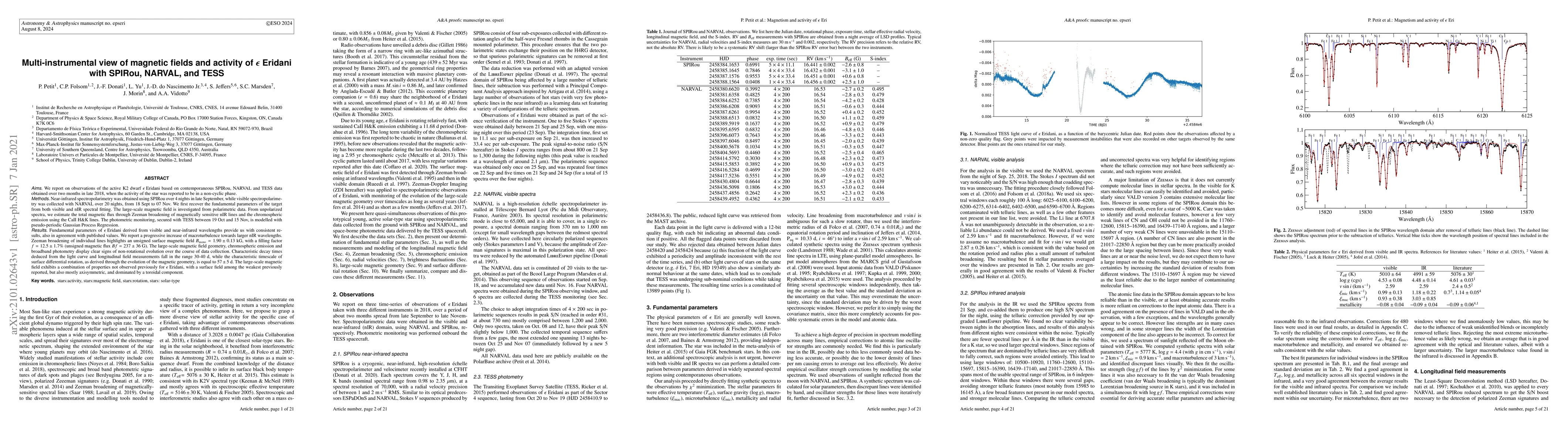 The research utilizes contemporaneous observations from SPIRou, NARVAL, and TESS to study the magnetic fields and activity of ε Eridani over two months in late 2018, during a non-cyclic phase.