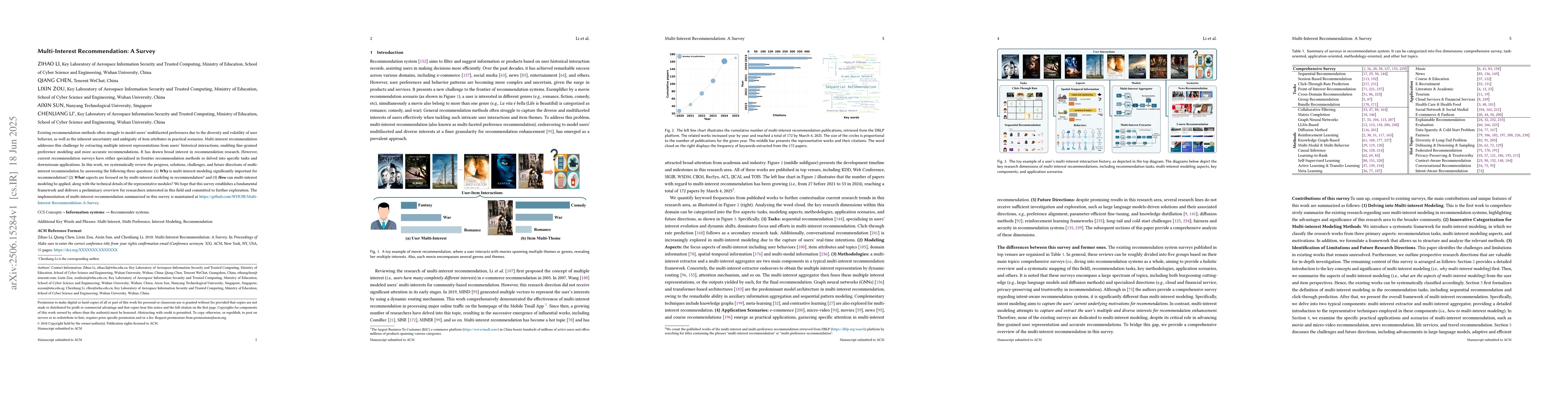 This survey paper examines multi-interest recommendation, a method addressing the limitations of traditional recommendation systems in modeling diverse user preferences. It explores the importance, focuses, and applications of multi-interest modeling, providing a comprehensive framework for researchers in the field.