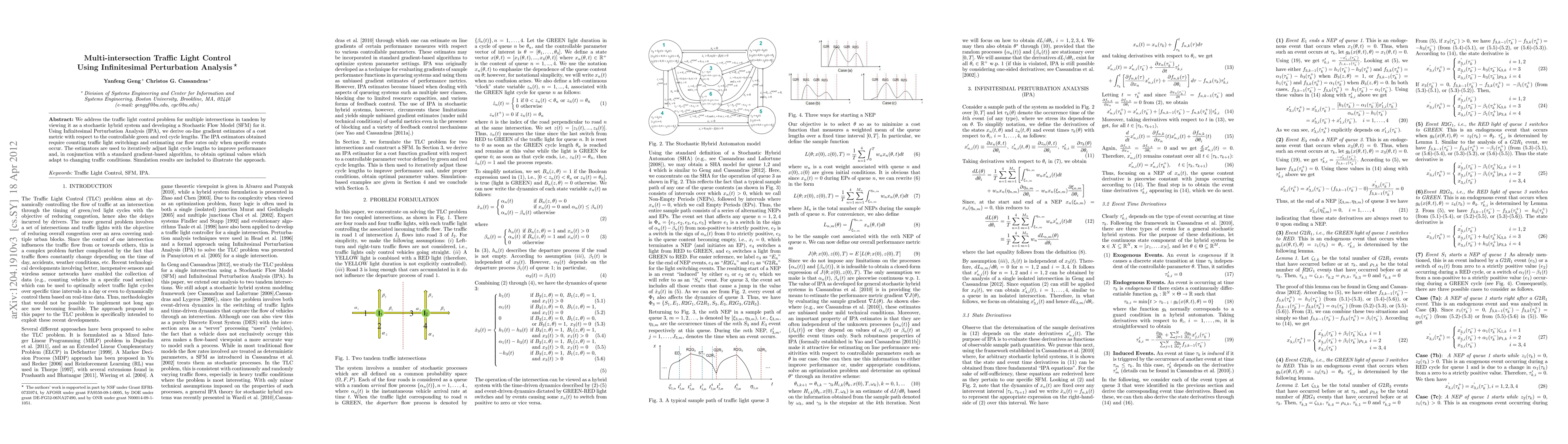 This paper proposes a Stochastic Flow Model (SFM) for multi-intersection traffic light control, employing Infinitesimal Perturbation Analysis (IPA) to derive online gradient estimates for optimizing green and red cycle lengths. The approach uses minimal data collection and integrates with a gradient-based algorithm to adapt to dynamic traffic conditions, as demonstrated by simulation results.