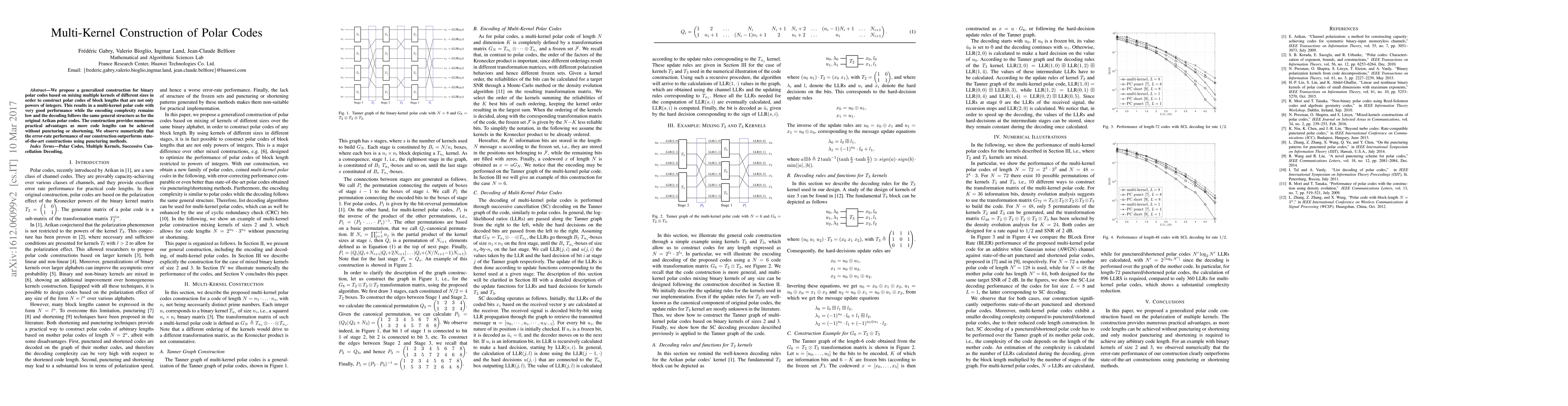 This paper proposes a generalized construction for binary polar codes by mixing multiple kernels of different sizes, allowing for block lengths beyond powers of integers. The resulting multi-kernel polar codes maintain low encoding complexity and outperform state-of-the-art punctured codes in error-rate performance.