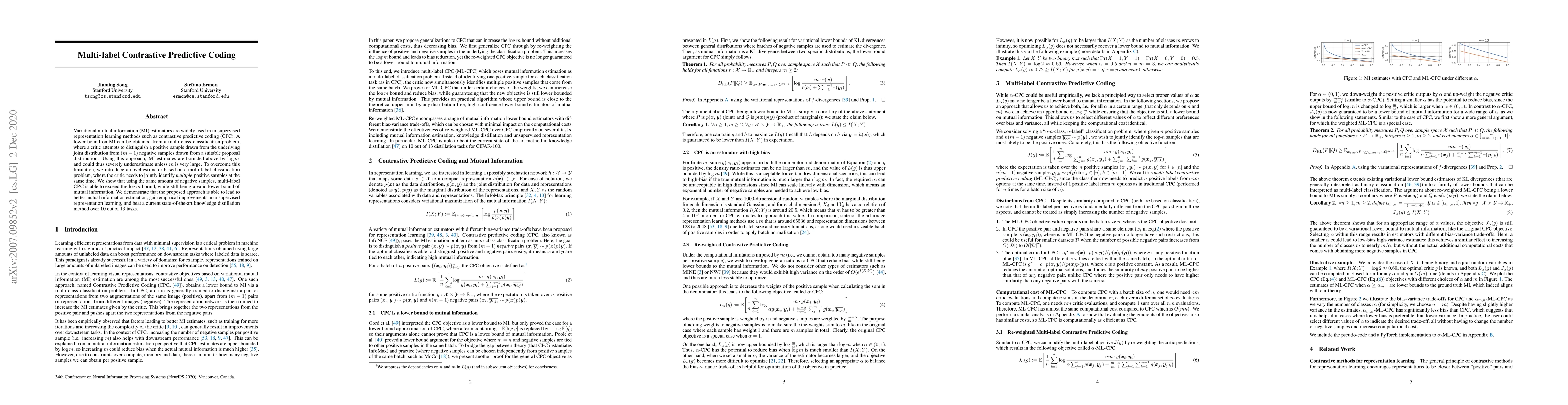 Researchers developed a new method for estimating mutual information in unsupervised learning called Multi-label Contrastive Predictive Coding, which outperforms existing methods in terms of accuracy and effectiveness.