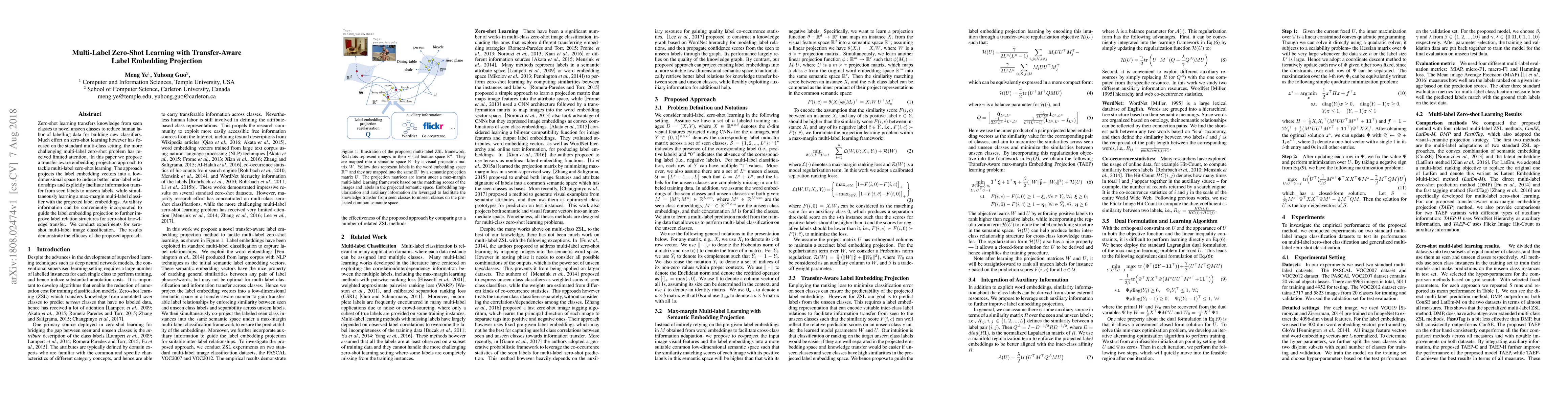 This paper proposes a transfer-aware embedding projection method for multi-label zero-shot learning, aiming to facilitate knowledge transfer from seen to unseen labels. The approach projects label embeddings into a low-dimensional space to enhance inter-label relationships and improve zero-shot classification performance.